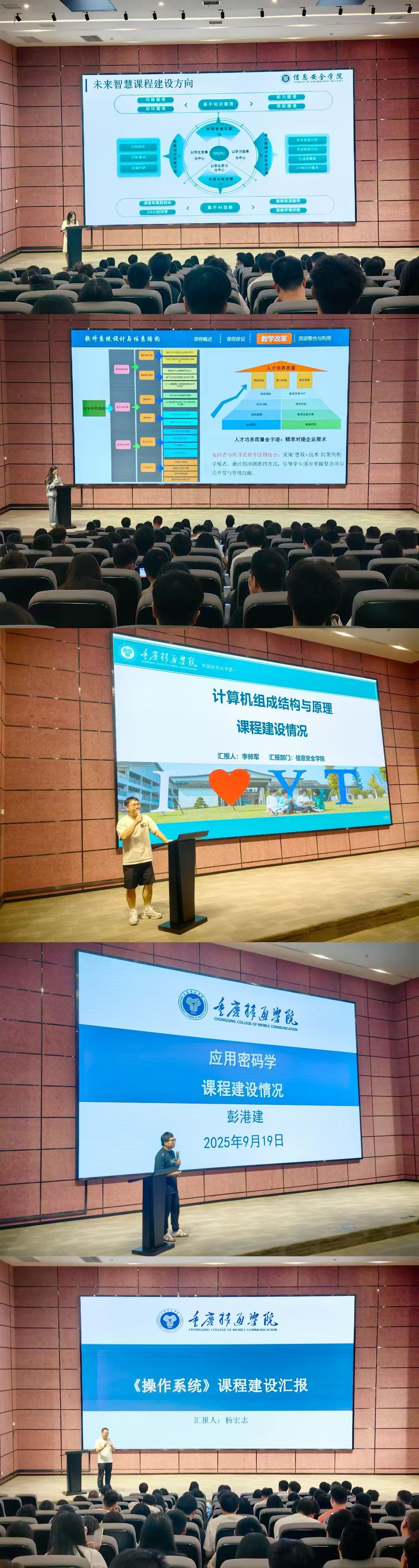 为进一步提升教师课程建设能力,发挥首批核心课程的引领示范作用,切实将优质课程建设经验转换为学院教学质量提升动力。2025年9月19日14:00,信息安全学院在贤者楼423多功能报告厅召开核心课程专题学习会,由五门核心课程负责人分享课程建设经验与成果,学院全体专任教师参会。