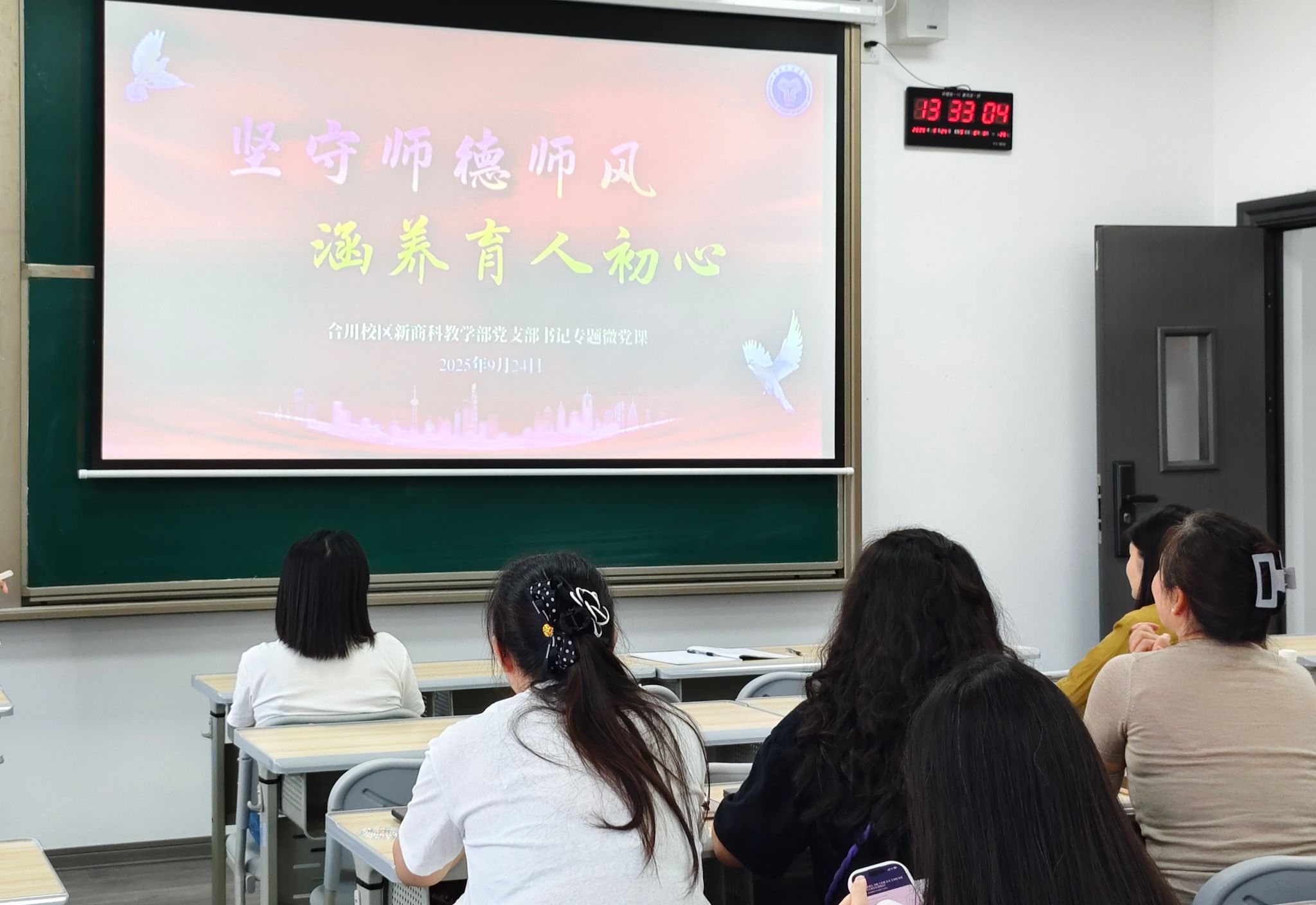 为深入贯彻落实党的教育方针,扎实推进师德师风建设,9月24日13点30分,重庆移通学院合川校区新商科教学部党支部组织召开了一场主题为“坚守师德师风,涵养育人初心”的专题微党课。本次党课由党支部书记主讲,支部全体党员教师参与学习与交流。