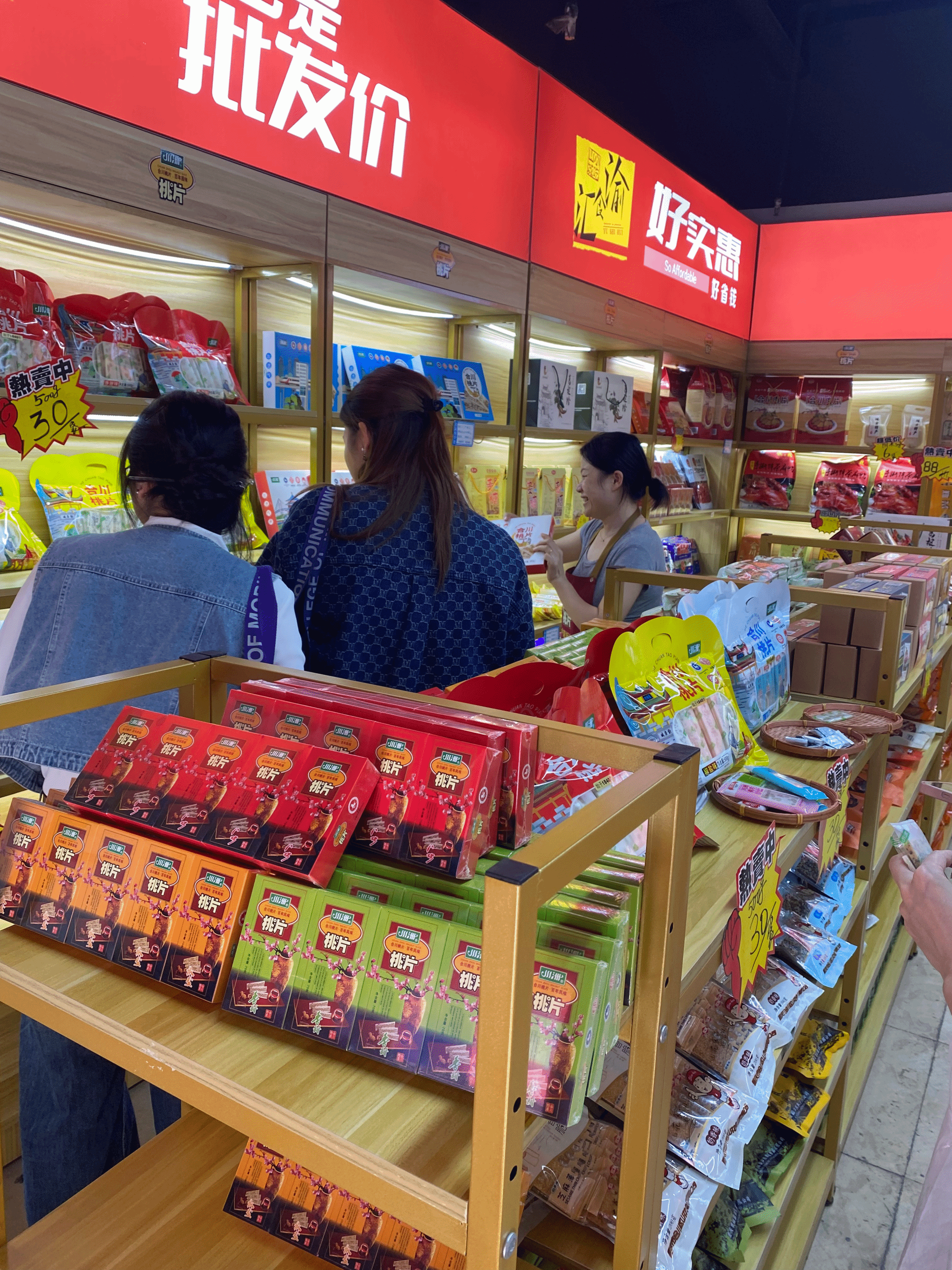 9月24日,项目组成员张颖、冯丽丽、谢彩辉、夏兴钰四位老师来到“川洲桃片”文峰古街工厂直营店开展首轮实地调研。在店内,项目组成员细致观察了店铺陈设、产品种类、定价策略、顾客流量及消费行为,并与店长及销售人员进行了初步交流,深入了解川洲桃片的历史文化、生产工艺、当前销售状况以及面临的市场竞争挑战。并现场记录、收集第一手资料,对传统食品品牌在新时代下的市场定位、营销渠道及消费者互动方式有了更为直观和深刻的认识。