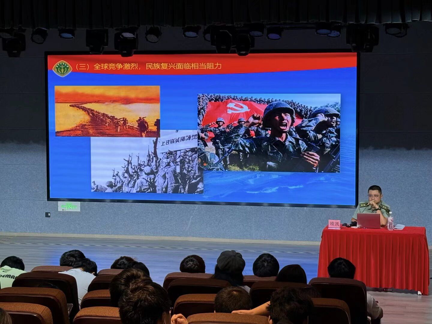 随后,欧凯博士结合当前国际形势,解读新时代国防安全的内涵与挑战,通过我国国防科技、军队建设等领域的成就,帮助在场学生直观感受国家实力,坚定“四个自信”。他特别指出,青年学生可通过学好专业知识、传播国防知识、立足岗位担当等方式,参与国防建设。