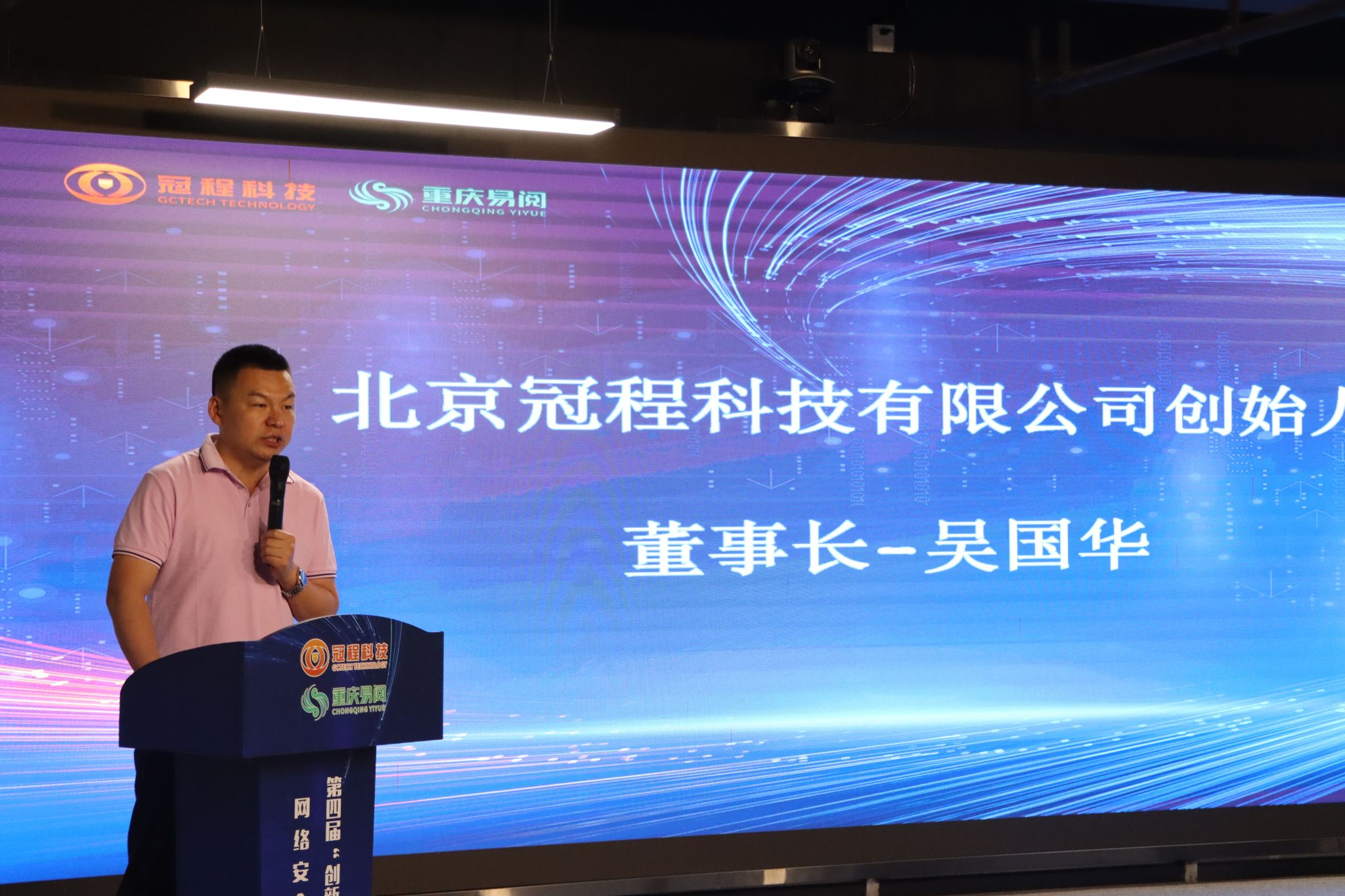 本次大会共持续5天,9月23日会议主题为“创新智能·赛启山城”,大会在全场齐唱《歌唱祖国》的激昂旋律中拉开序幕,在热烈的掌声中,重庆易阅科技有限公司母公司,北京冠程科技有限公司创始人吴国华先生致欢迎辞,分享了冠程科技扎根重庆、深耕网安的成长历程,表达了对网络安全事业的坚定信念与热忱。