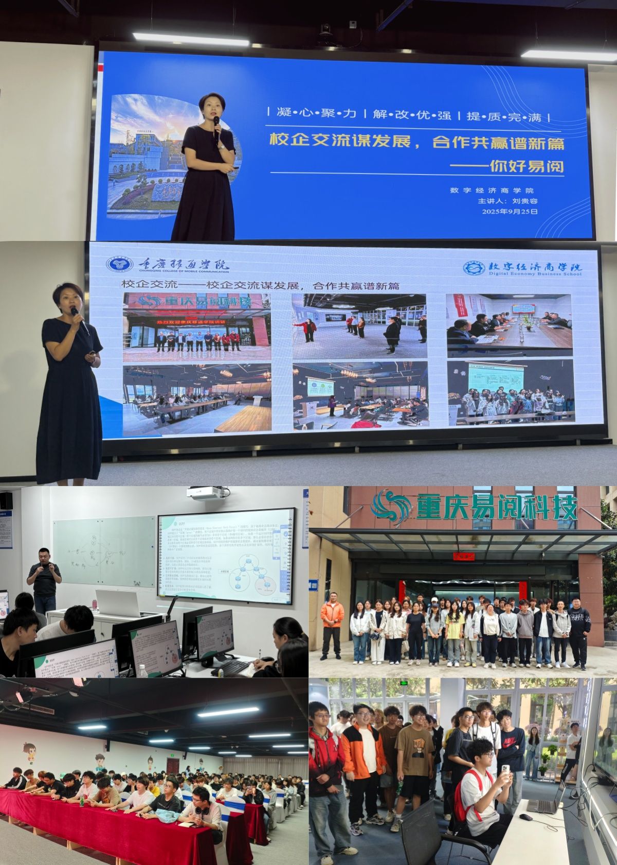 2025年9月25日,大会第三天,会议主题为“校企协盟,育才强安”,数字经济商学院院长刘贵容代表重庆移通学院分享了学校办学理念模式和数字经济商学院、大数据学院、信息安全学院等在数字经济时代背景下的人才培养探索。刘院长表示,重庆移通学院将积极推动产教融合、校企协同,通过共建课程体系、共育师资队伍,以企业真实需求为牵引,打造“技术+管理”的复合型人才。她特别提到,与冠程科技、重庆易阅的合作,不仅为学生提供高质量的实习就业通道,更为未来深化产教融合、构建校企协同育人新模式积累了宝贵经验。