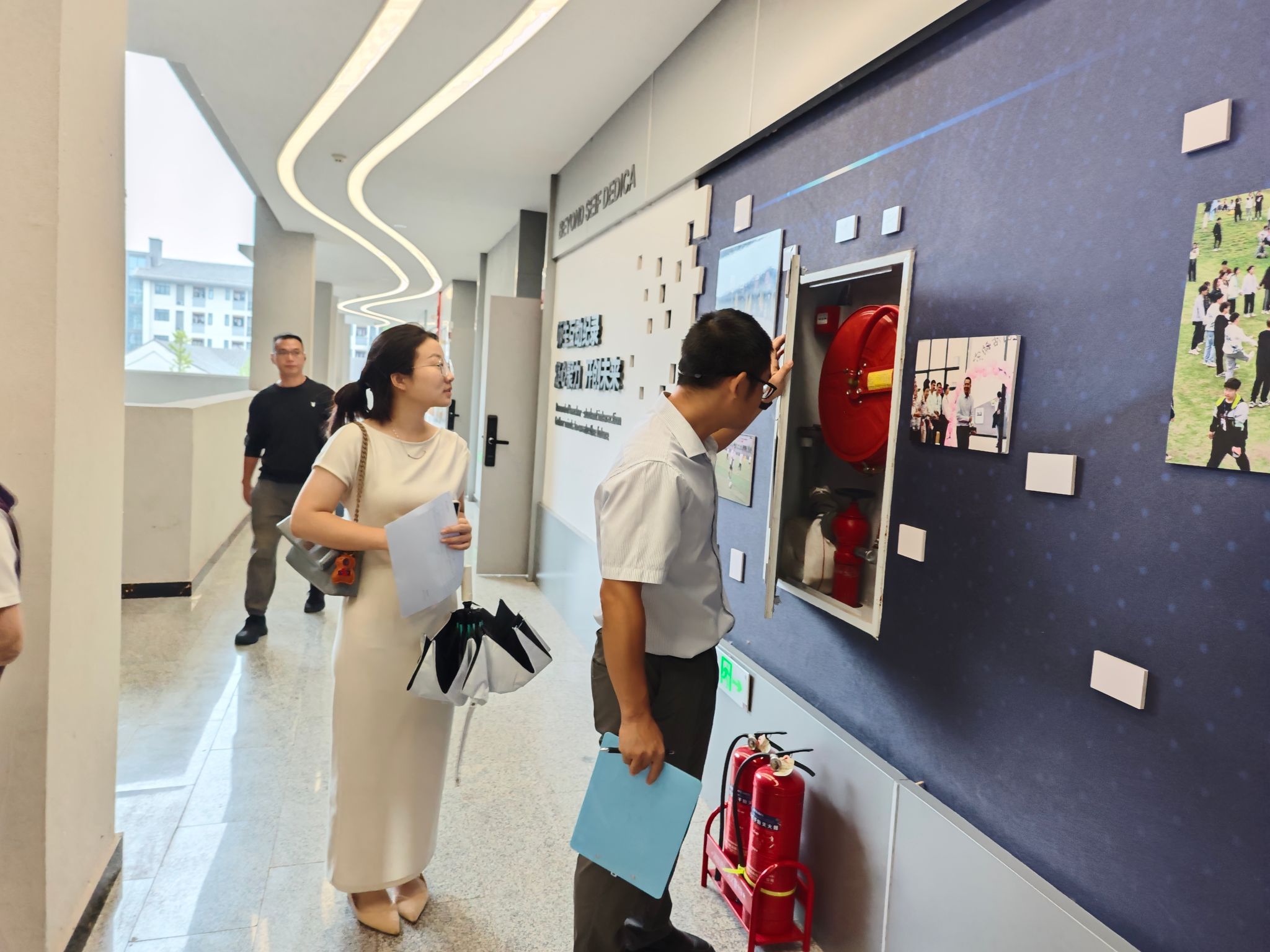 校区安稳办与第4网格成员单位负责人共同参与,深入实训楼、仁者楼、贤者楼及明善图书馆等重点区域,逐项排查安全隐患,重点查看设施设备运行、安全管理制度落实及应急保障情况。