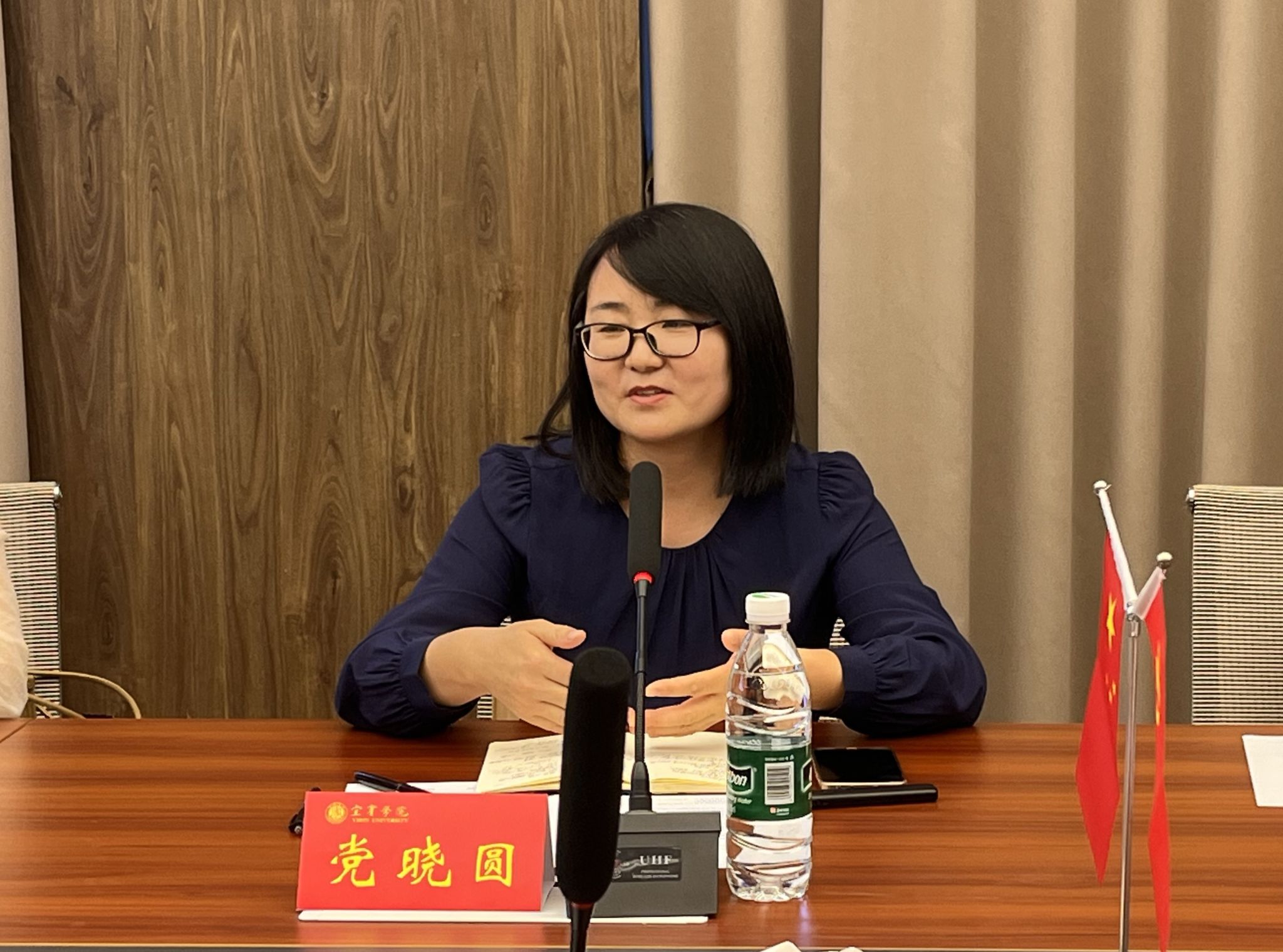 随后,重庆移通学院智能工程学院院长党晓圆介绍了学院的基本情况、人才培养举措及本次调研的核心目的。她表示,智能工程学院聚焦机械制造、自动化等领域,正处于深化课程改革、强化实践教学的关键阶段,此次专程赴宜宾学院,重点希望借鉴其在“质量管理与课程体系建设”、科研成果转化、校企协同育人等方面的成熟经验,为学院后续人才培养方案优化提供参考。