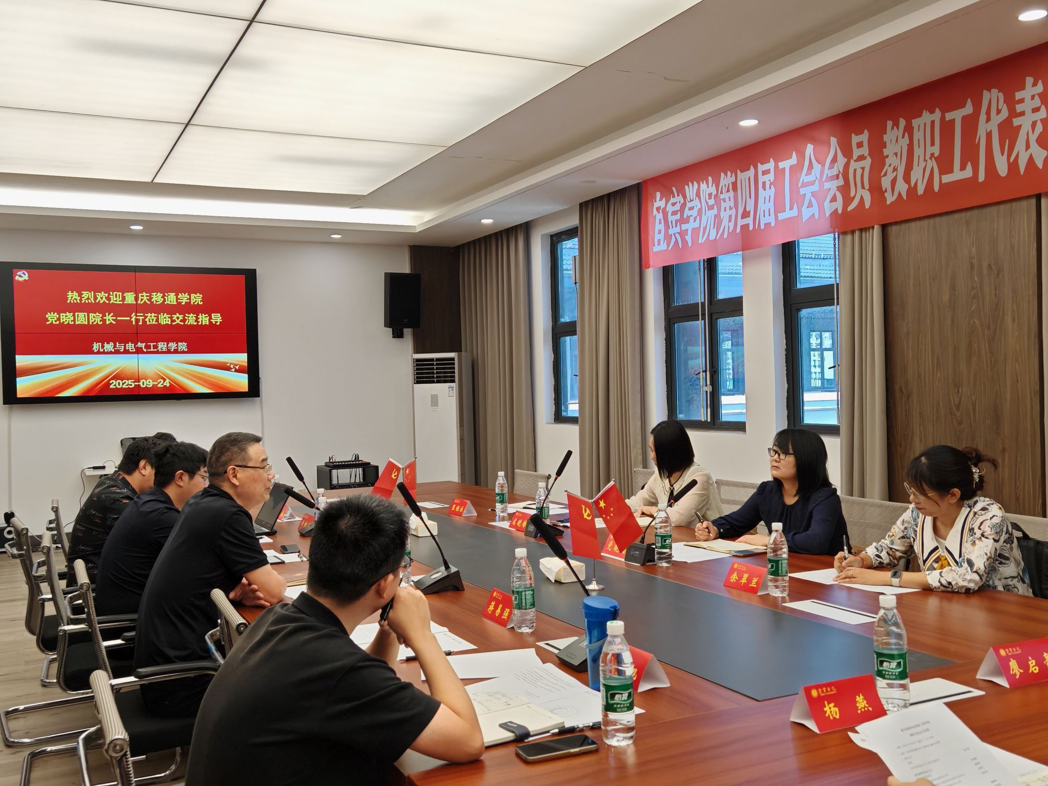 9月24日上午10时,智能工程学院院长党晓圆带队,智能制造教研室主任寇晓培、机械设计制造及其自动化专业负责人余翠兰、机械基础实验教学中心主任张钰柱一行,赴宜宾学院机械与电气工程学院开展调研交流。本次调研以“深化学科建设、优化育人机制”为核心,围绕课程体系构建、专业建设、校企合作模式等关键议题展开深入探讨,旨在通过校际经验互鉴,进一步完善智能工程领域人才培养体系。会议于宜宾学院机械与电气工程学院3421会议室顺利举行,由宜宾学院机械与电气工程学院副院长陈文俊主持。