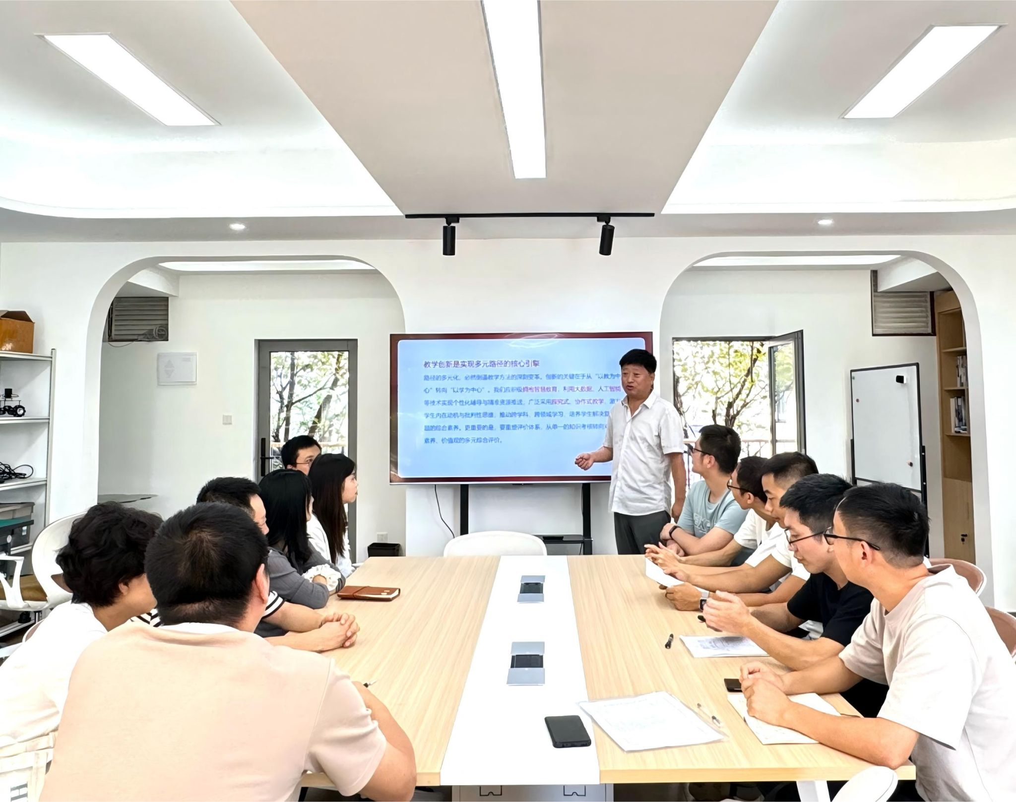 研讨会伊始,教研室主任冯铁成老师介绍本次研讨会内容。指出固守单一化、标准化的培养模式已难以满足个体发展与社会需求,构建一个更加开放、灵活、以学习者为中心的教育生态是当前教育改革的核心。冯老师从“多元路径是尊重个体差异、释放人才潜能的必然要求”和“教学创新是实现多元路径的核心引擎”两个维度进行了深入阐述。人才培养应搭建“立交桥”而非“独木桥”,需贯通学术型、应用型、技能型等多种成长通道,并大力拓展项目式学习、社会实践等非正式学习经历。在教学层面,呼吁参会教师积极拥抱智慧教育,实现从“以教为中心”向“以学为中心”的转变,通过探究式、协作式教学及多元评价体系,激发学生内在动机与综合素养。