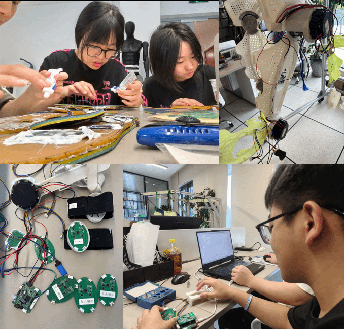 在公司负责人的指导下,实习学生分组完成了应变片的封装与测试、智能鞋垫的制作与测试,以及下肢八路肌电和肌张力的检测工作,并将所获数据上传,以构建完整的数据集。
