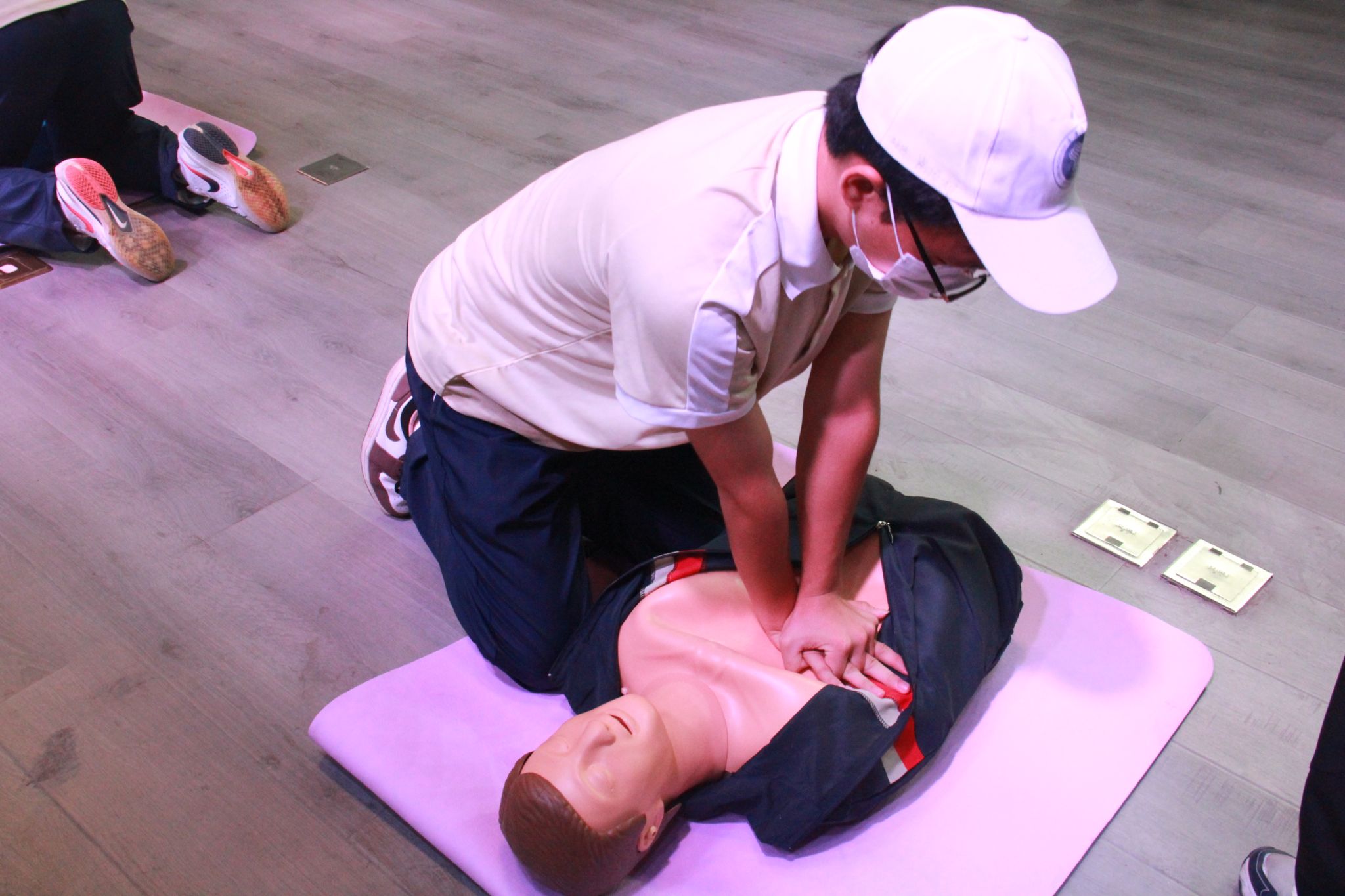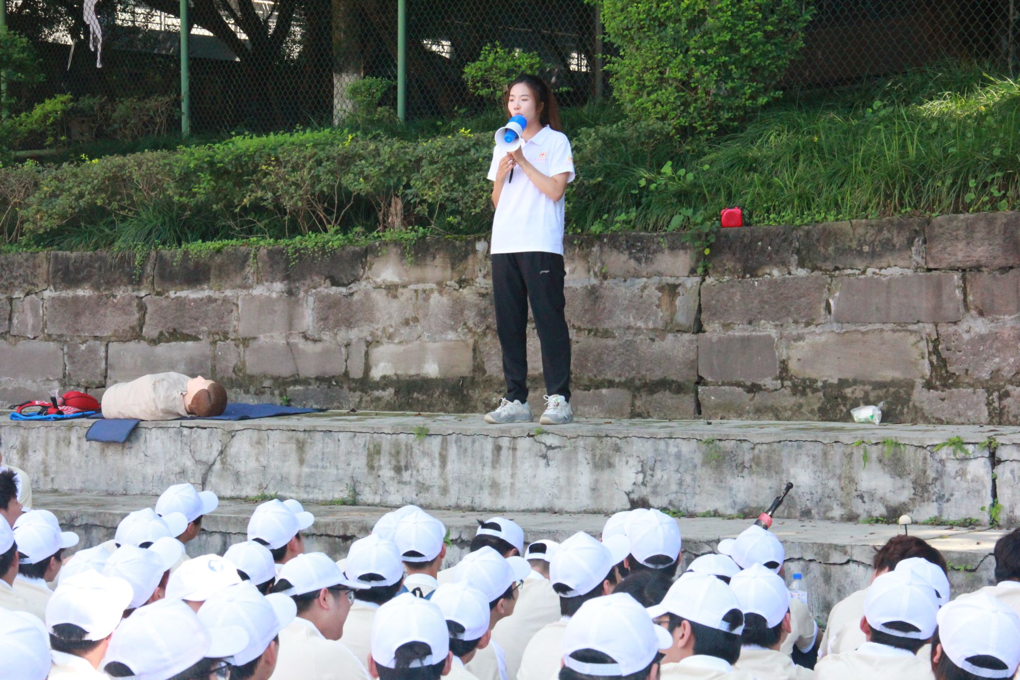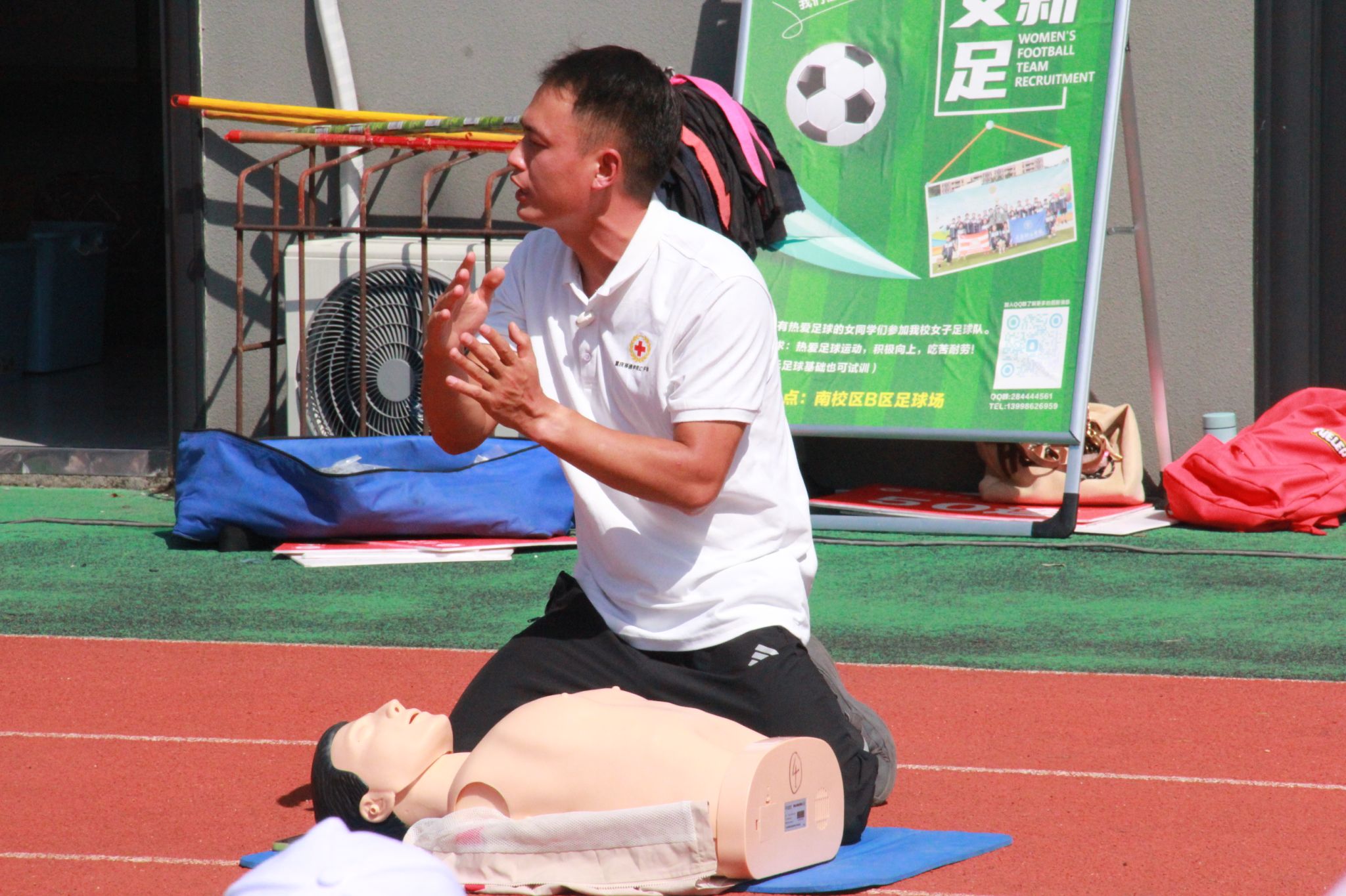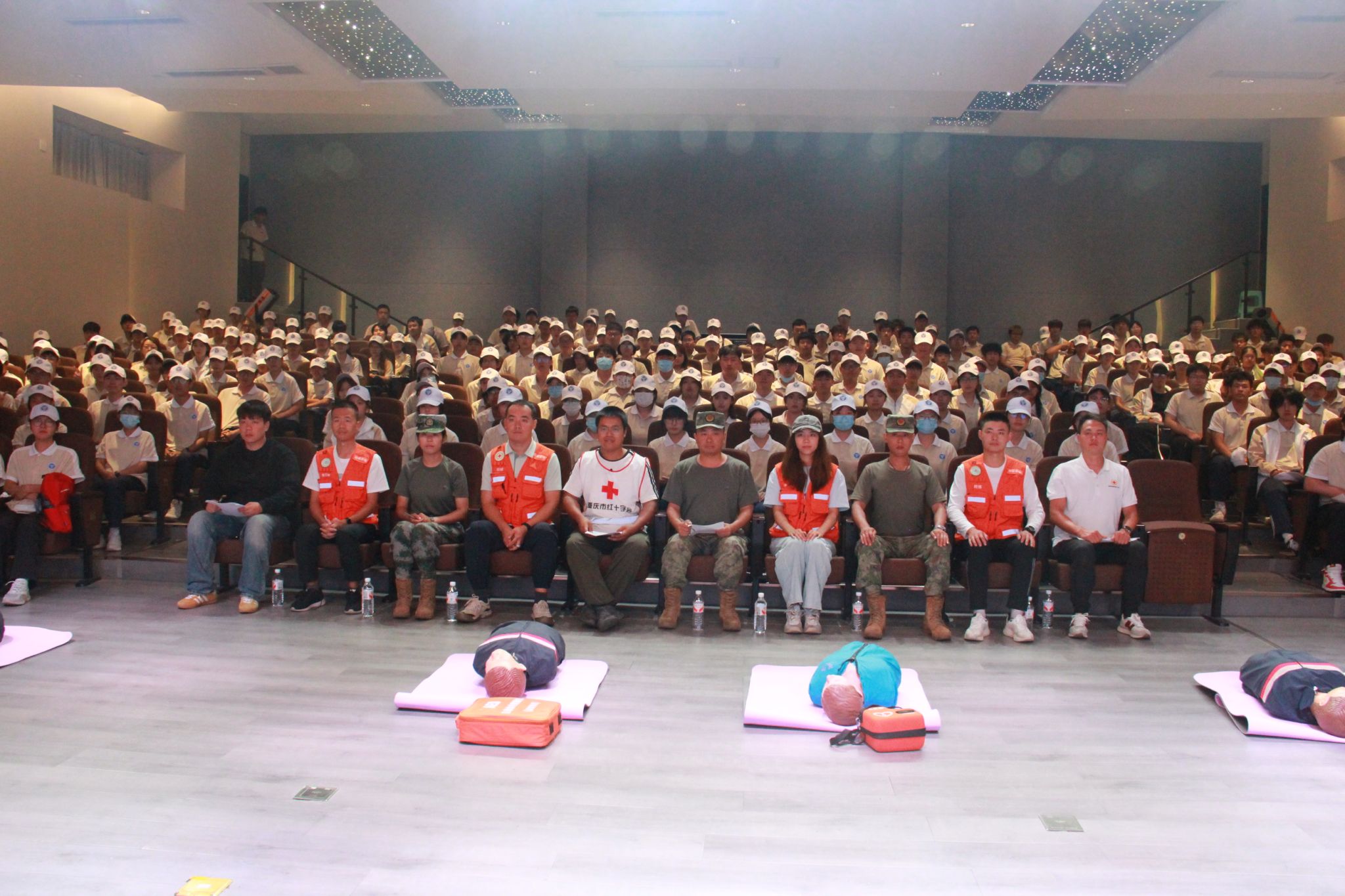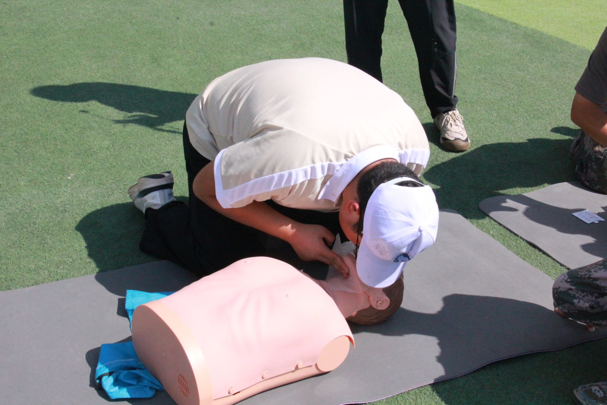 我校11位红十字会应急救护专业培训师深入连队,在烈日下示范教学,围绕心肺复苏(CPR)、自动体外除颤器(AED)使用、气道异物梗阻解除术三大核心技能展开培训。学员们跪地练习、反复操作模拟人,从手法按压到人工呼吸,每一步都力求标准。