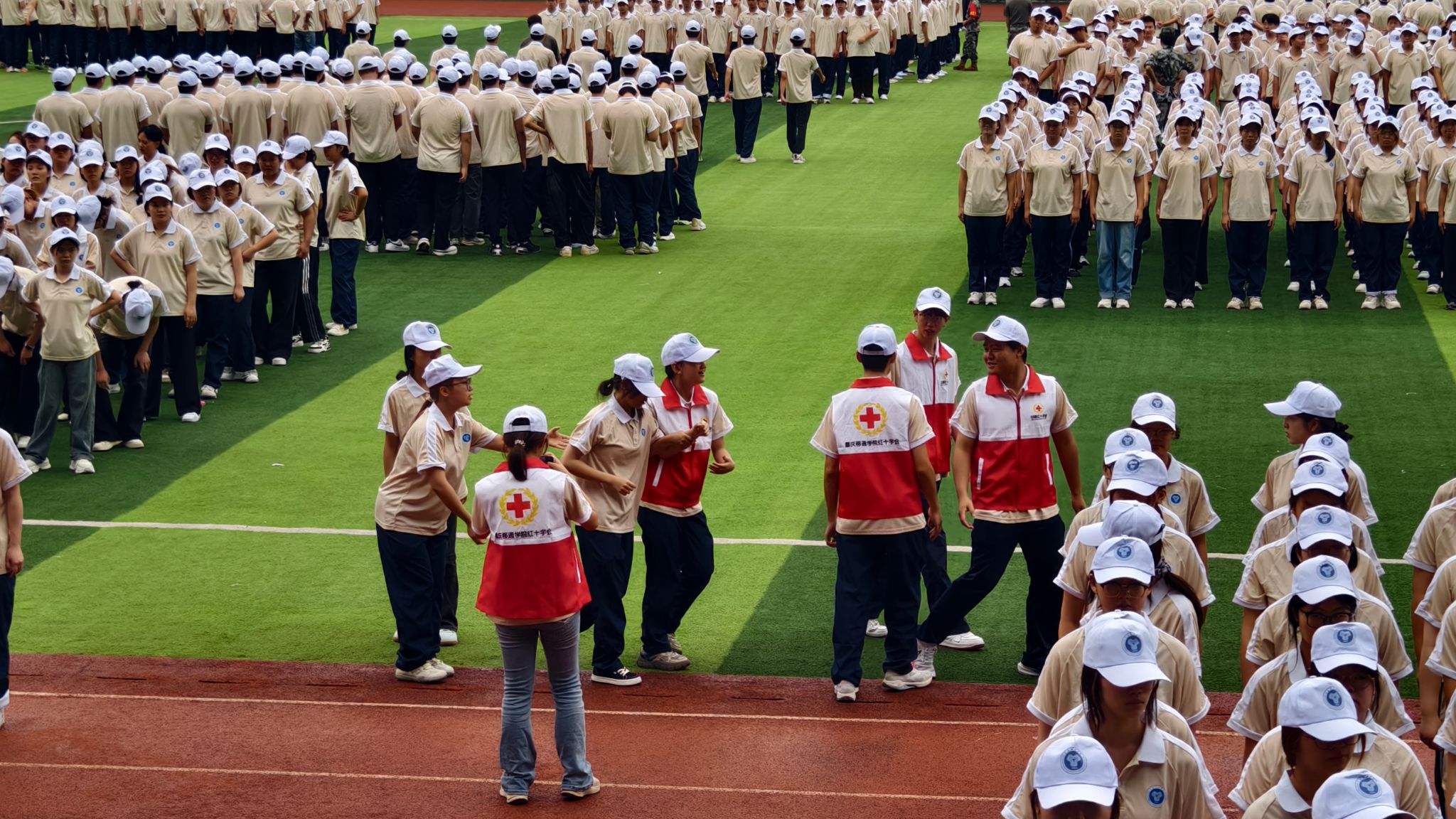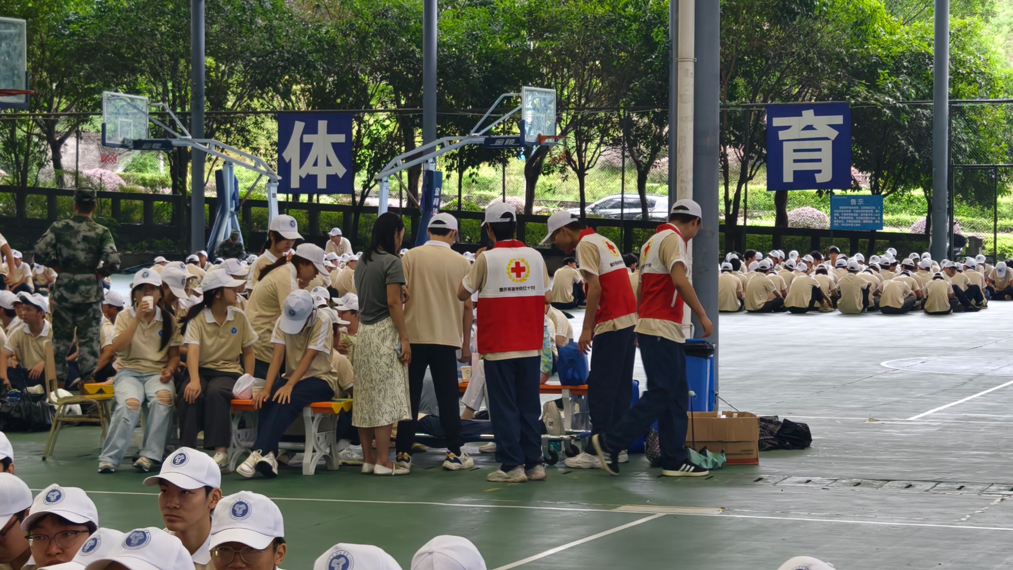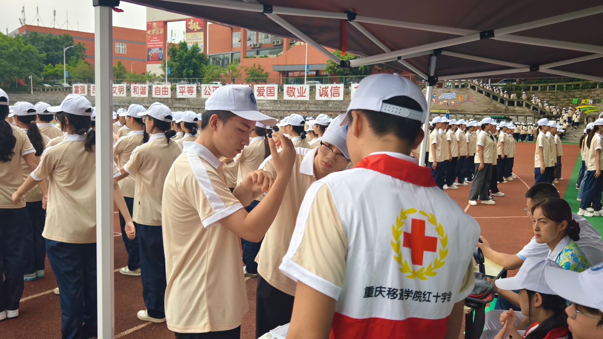 军训期间,学校红十字会队员全程驻守医疗点,随时应对中暑、擦伤等突发状况。他们身着统一服装,携带急救装备,在训练场边默默值守,成为学员们最安心的“后勤防线”。