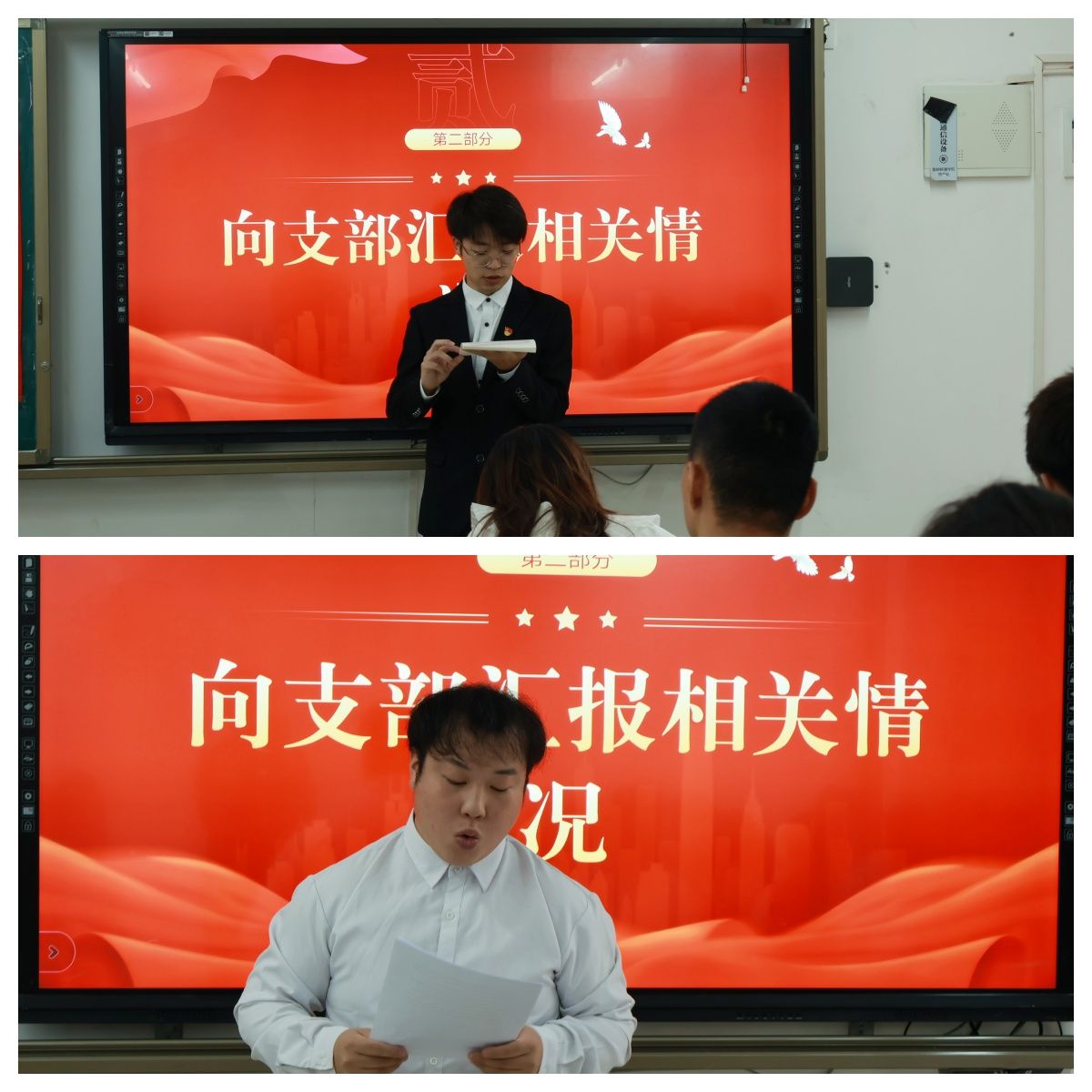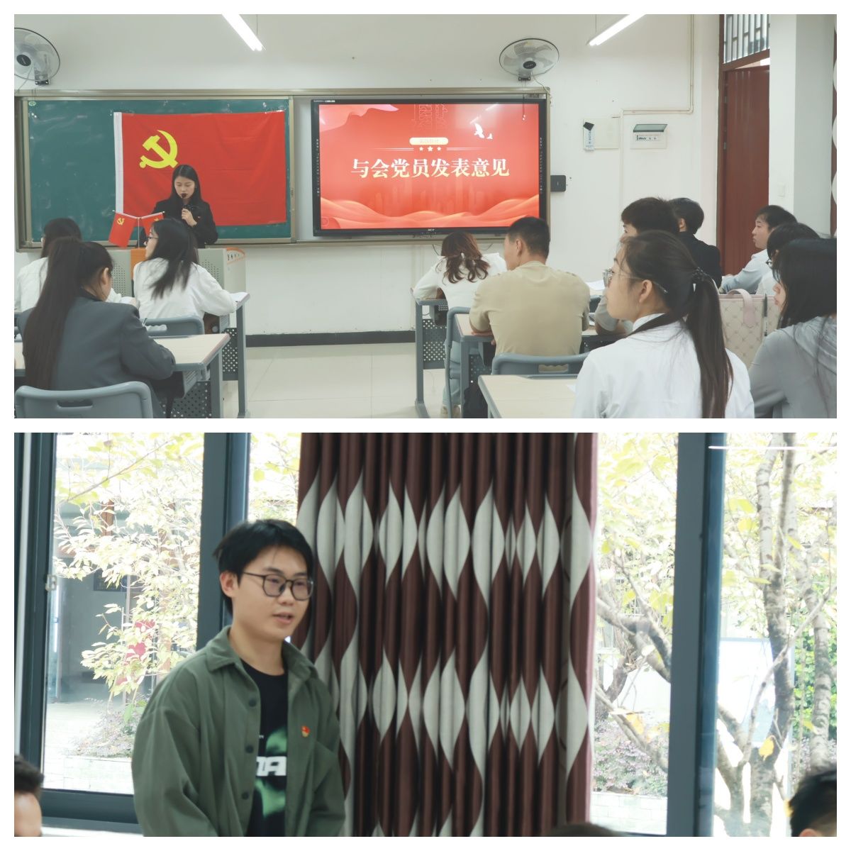 通过发展党员向支部同志们做出本人情况汇报、支部书记发表意见、入党介绍人发言、与会党员发言等流程,按照党员转正程序,刘星宇、付成旺2名预备党员同志,依次向党组织汇报了个人在预备期内的思想、学习与实践情况,明确了入党动机并表达了自己对加入中国共产党的坚定决心。经入党介绍人介绍转正对象的主要情况以及与会党员发表意见,对其能否转正表明自己的意见。2024级轨道交通电气与控制(专升本)1班雷金申同志表达到,今天看到两名党员同志加入党组织,我发自内心的高兴。我们加入党组织不仅要以此为荣,更要以此为责任,在生活中要从身边小事抓起,不断做大做好。因此,我愿与各位党员同志们共勉,在今后的学习、工作和生活中,做到“博学之、审问之、慎思之,明辨之、笃行之”。