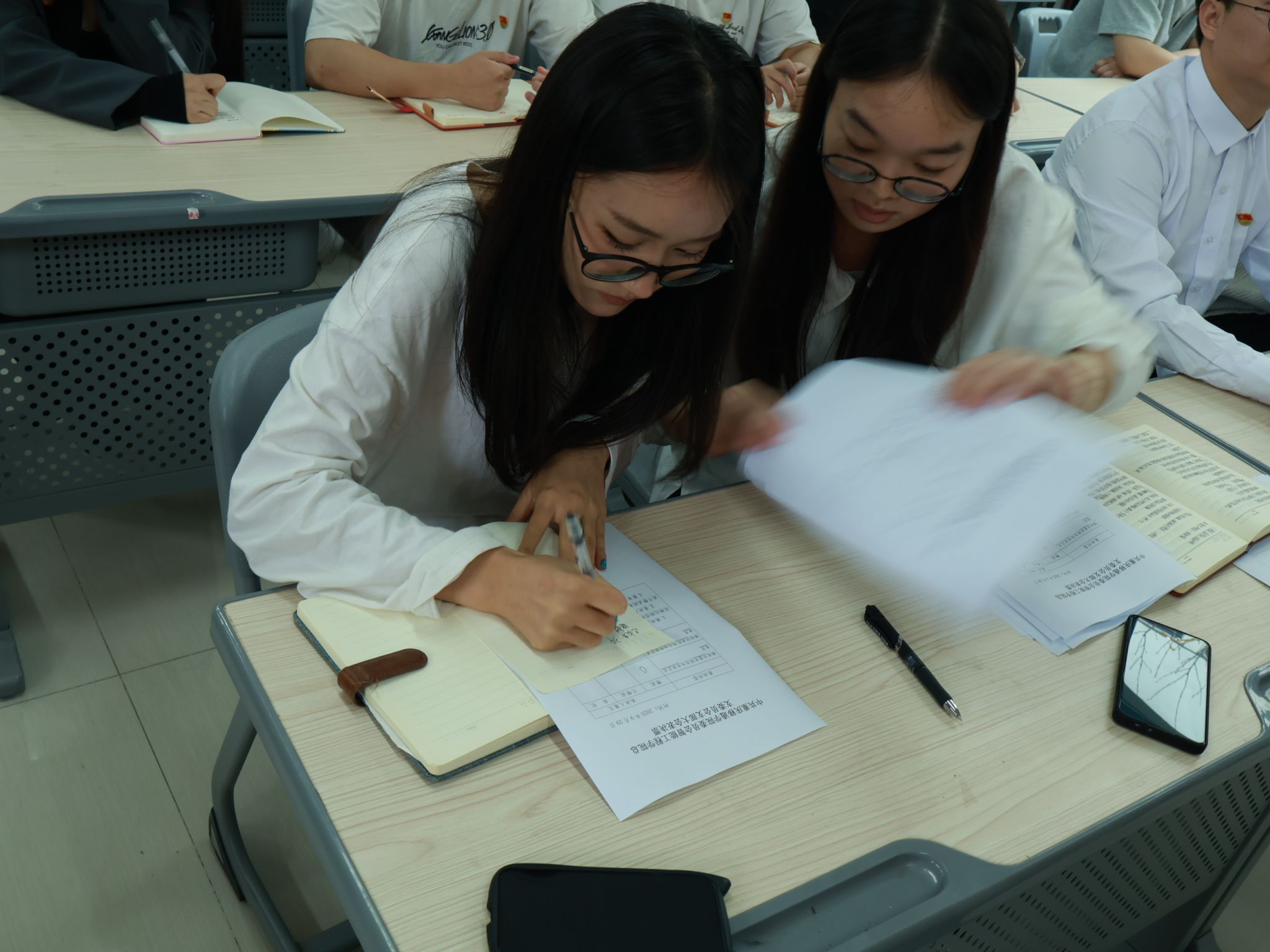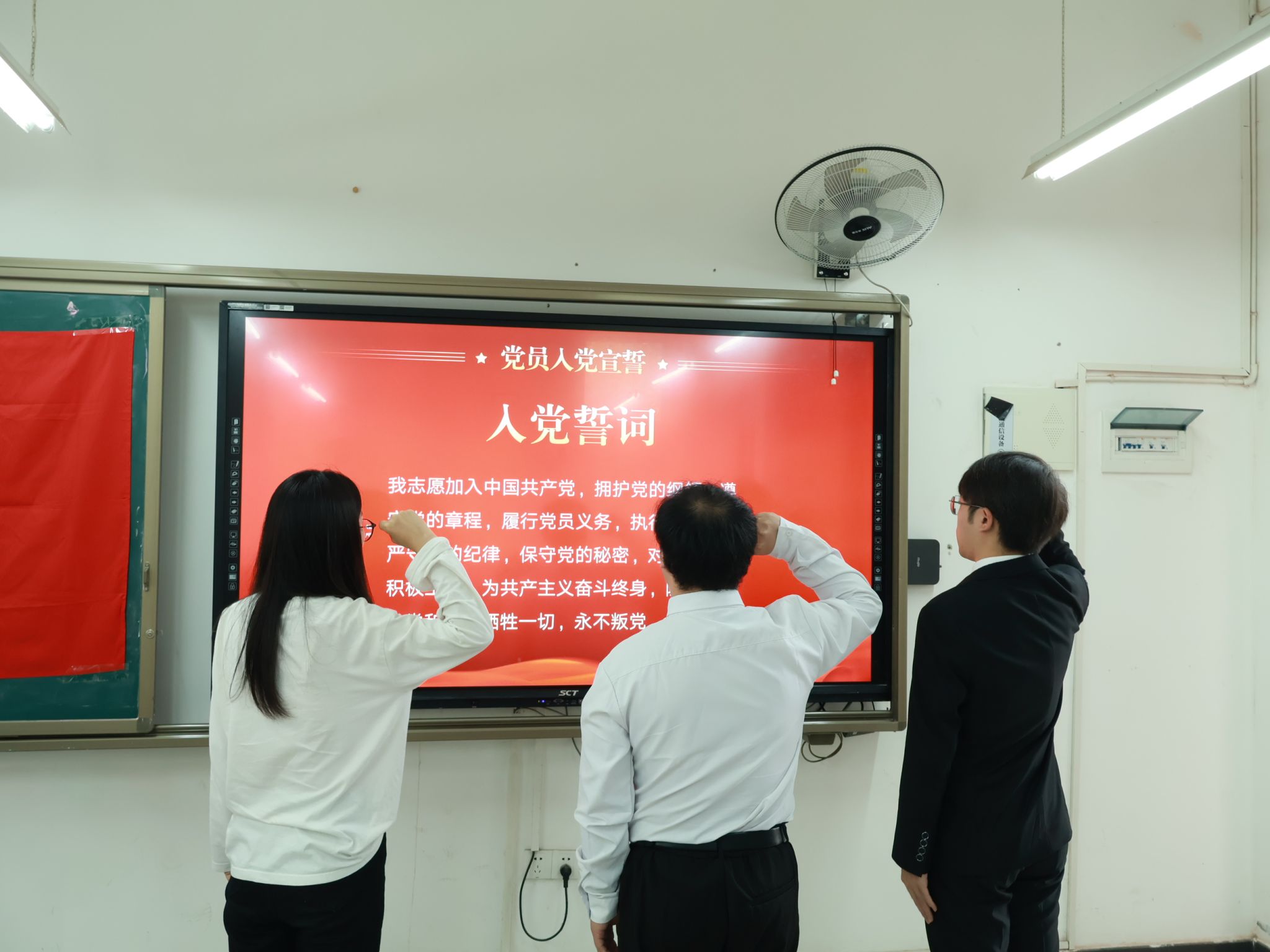 “我志愿加入中国共产党,拥护党的纲领,遵守党的章程……”在李雯同志的领誓下,2名新党员面向鲜红党旗郑重宣誓,句句坚定的誓言响彻会场,展现着新时代青年党员的忠诚与担当。宣誓结束后,学生支部书记谭英姿同志寄语新党员:“转正是政治生命的新启程,希望你们谨记入党初心,在学思践悟中磨炼本领,在服务群众中履行使命。”