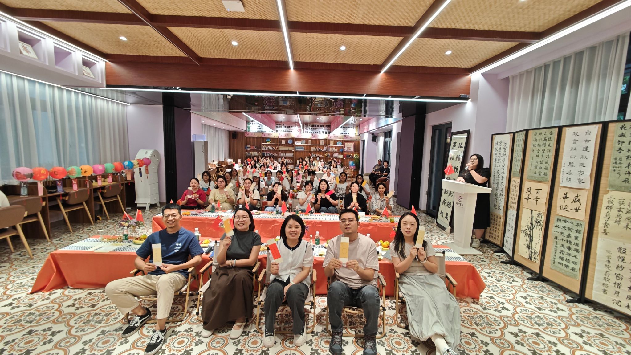 一段庄严的“9.3”阅兵集锦拉开了活动序幕。激昂的旋律与铿锵的步伐,点燃了现场每一位师生心中的家国情怀。这份澎湃的情感,不仅是对强国征程的致敬,更是对中华文化根脉的追寻与认同。豪情未息,“双节知识大比拼”接续展开。从中秋习俗到国庆历史,从诗词典故到时代故事,同学们对答如流,展现出对传统文化的热爱,也映照出书院“家文化”中“传文化、共学习”的生动图景。