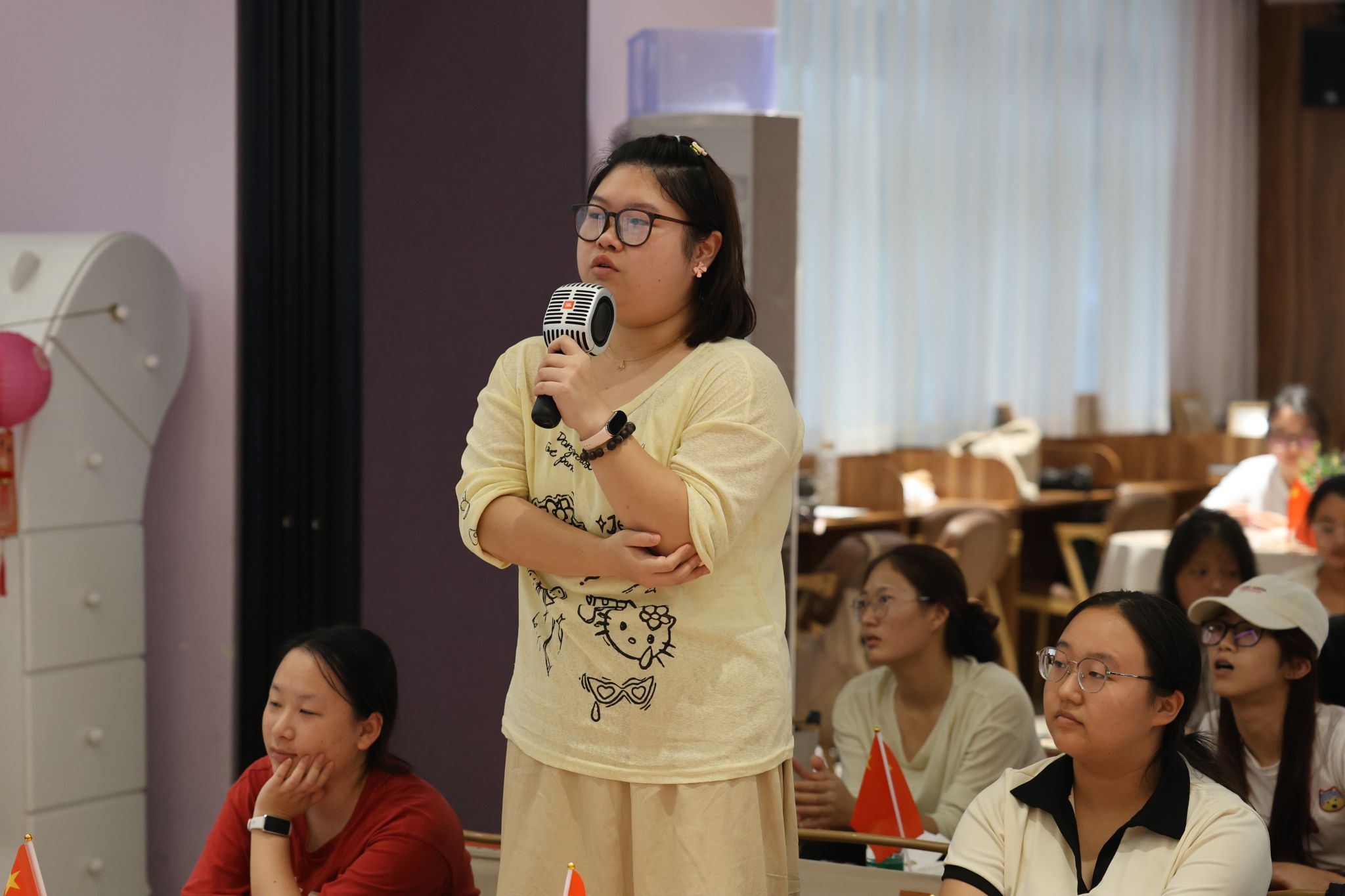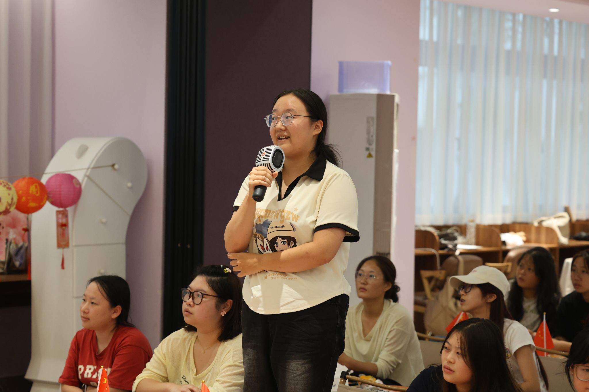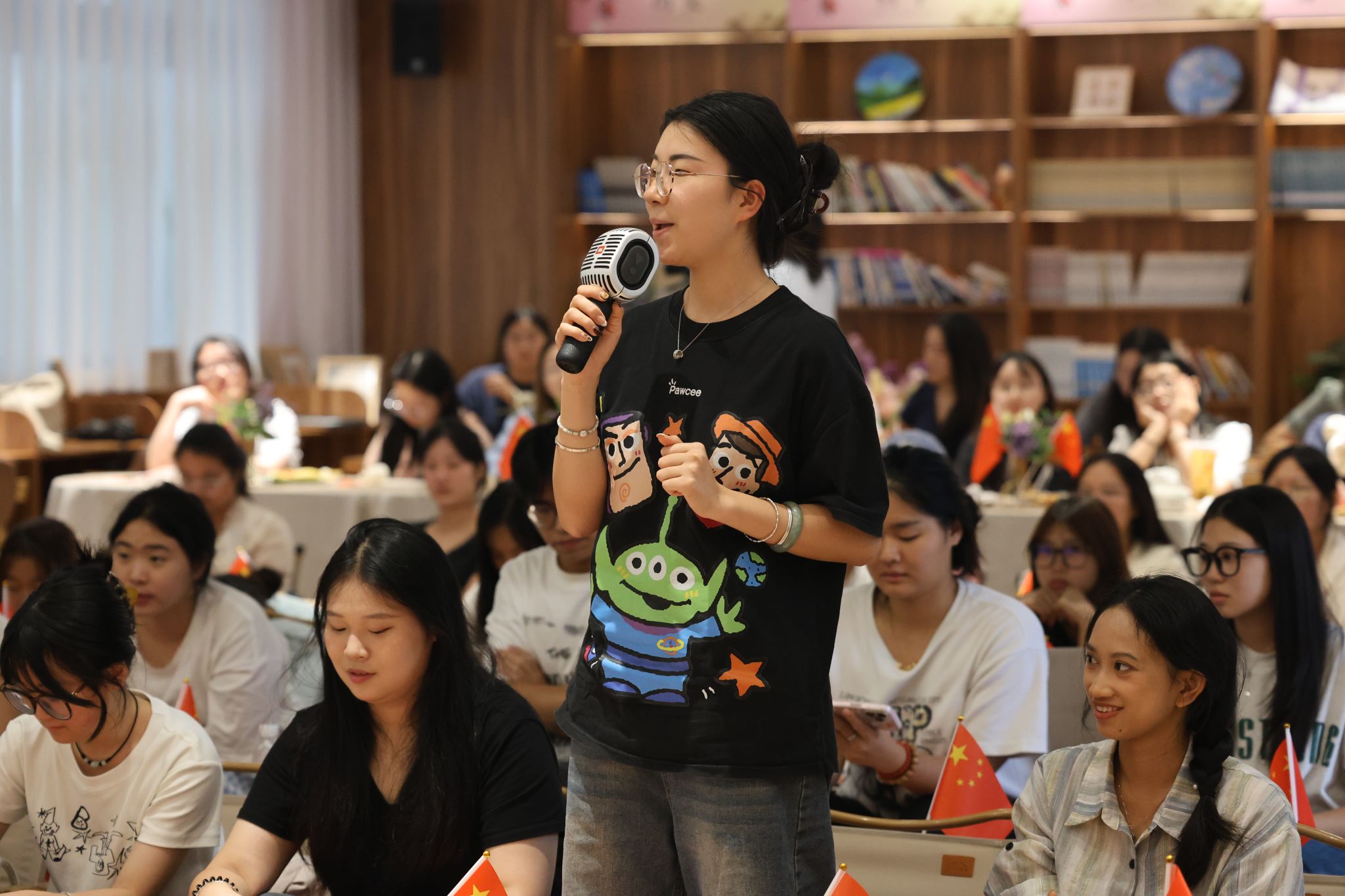 每一段个人记忆,都是时代叙事的温暖注脚。在“晒双节珍藏”环节,同学们分享了节日里有意义的物品与影像。信息安全学院大三的宋诗希展示了在湖南旅行时拍摄的照片——枝头挂满五星红旗,阳光洒落,让她真切感受到祖国与人民血脉相连;来自山西的专升本学生张钰欣,分享了2022年国庆在重庆的留影,那是她来渝后的第一个节日,与新朋友同行,初识山城风貌;来自成都的杨利红则带来一张在天府广场拍摄的“祝福中华人民共和国成立75周年”照片。在她心中,那里不仅是城市发展的见证,更是家族精神的传承地——爷爷曾在此致敬烽火岁月,父母于此许下誓言,如今她与母亲每年国庆在此观看升旗,延续着这份独特的家国情怀。一段段讲述,一次次共鸣,情感在交流中悄然凝聚。