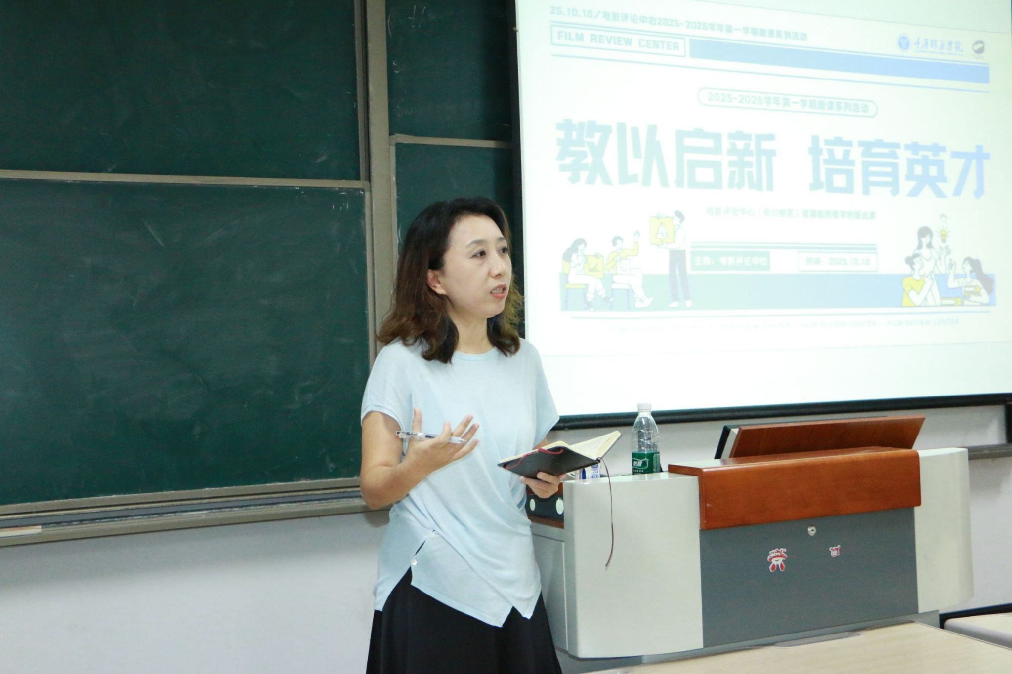 为深入推进学校教学改革,全面落实“以赛促教、以赛促学、以赛促创”的育人理念,10月10日13时,电影评论中心(合川校区)依托重庆移通学院首届教师创新大赛平台,成功举办部门内部教师教学创新比赛。本次比赛覆盖思政、新文科两大赛道,16位教师围绕《从小说到电影》《经典电影赏析》《电影中的导演思维》3门课程展开教学展示,以丰富的教学创意、深度的文本解读与鲜明的赛道特色,呈现了一场兼具专业性、创新性与思政性的高质量教学实践。