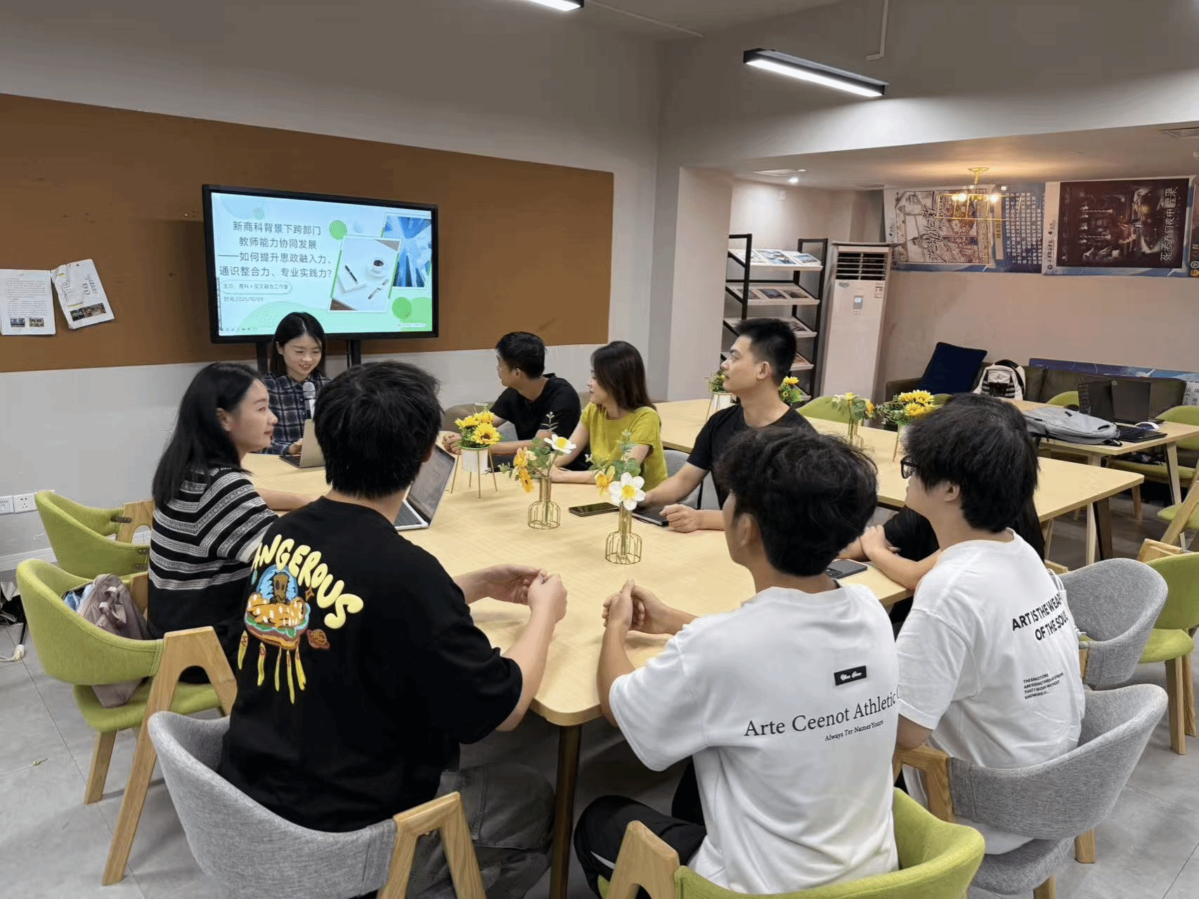 2025年10月9日,由“商科+”交叉融合工作室主办的“新商科背景下跨部门教师能力协同发展——如何提升思政融入力、通识整合力、专业实践力?”主题研讨会,在綦河书院长风交流空间举行。研讨会由喻雪琪老师主持,通识教学部刘艾璐、马克思主义学院邹国辉、数字经济商学院李承越与赵鑫等教师代表及学生代表参会,聚焦“协同培训、互助机制、能力认证”三大核心议题深入研讨。