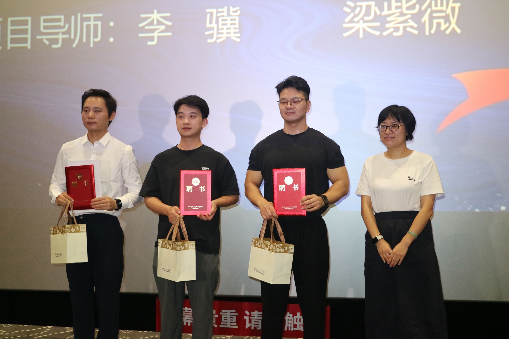 随后,典礼进入庄重时刻。电影商务产业学院张云潇院长与杨磊经理作为颁奖嘉宾,为项目导师颁发聘书。当导师们接过沉甸甸的聘书,也正式接下为移通学子“传道受业解惑”的责任,现场严肃又暖心的氛围,让这份师生约定更显珍贵。