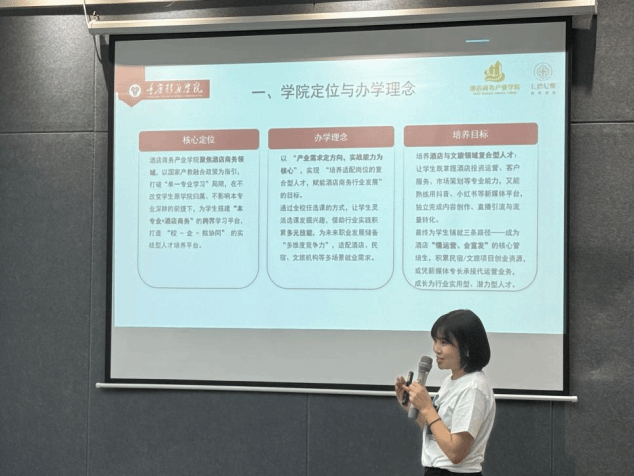 电商产业学院成立2年获文旅酒店类一等奖18项、二等奖10项,输送多名管培生;合川校区首期斩获省一等奖2项、二等奖3项,数十名学员进入合作酒店实习,3人赴华盛集团实习。 陈正丽,首期学员,现成为合作酒店管培生。 曾欣月,参与上海专业研学,深入丽思卡尔顿、W酒店等参访,系统掌握OTA运营、酒店投资分析,并在酒店实训中完成前台接待、应急处理等实战任务。 墙林宏,从綦江校区实训班到合川校区二期,通过“理论+真实场景”学习,掌握酒店运营核心能力,因认可实训价值主动二次报名。