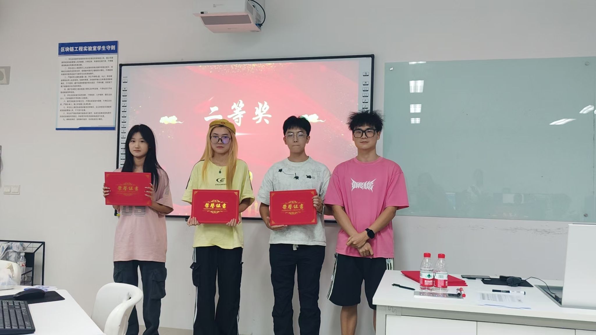 比赛伊始,应用组与技术组参赛选手齐聚贤者楼阶梯处合影留念,定格赛事美好开端,也见证选手们的逐梦初心。合影结束后,选拔赛正式拉开帷幕。为保障赛事公平公正开展,数字经济教研室陈明燕、张菡、赵鈺琳、徐浪四位老师担任本次大赛监考人员,全程严谨履职,维护赛场秩序。赛场上,技术组选手聚焦区块链核心技术展开角逐,应用组选手围绕区块链技术实际应用深耕比拼,整场比赛紧张有序,选手们凭借前期充分准备,展现出扎实的专业功底与出色的创新能力。