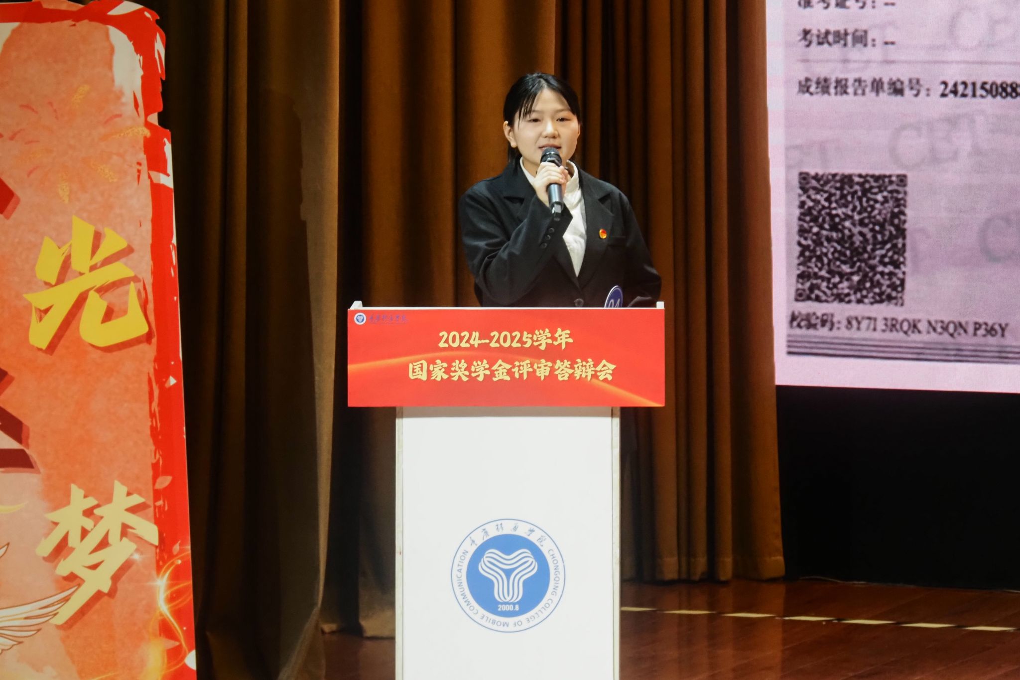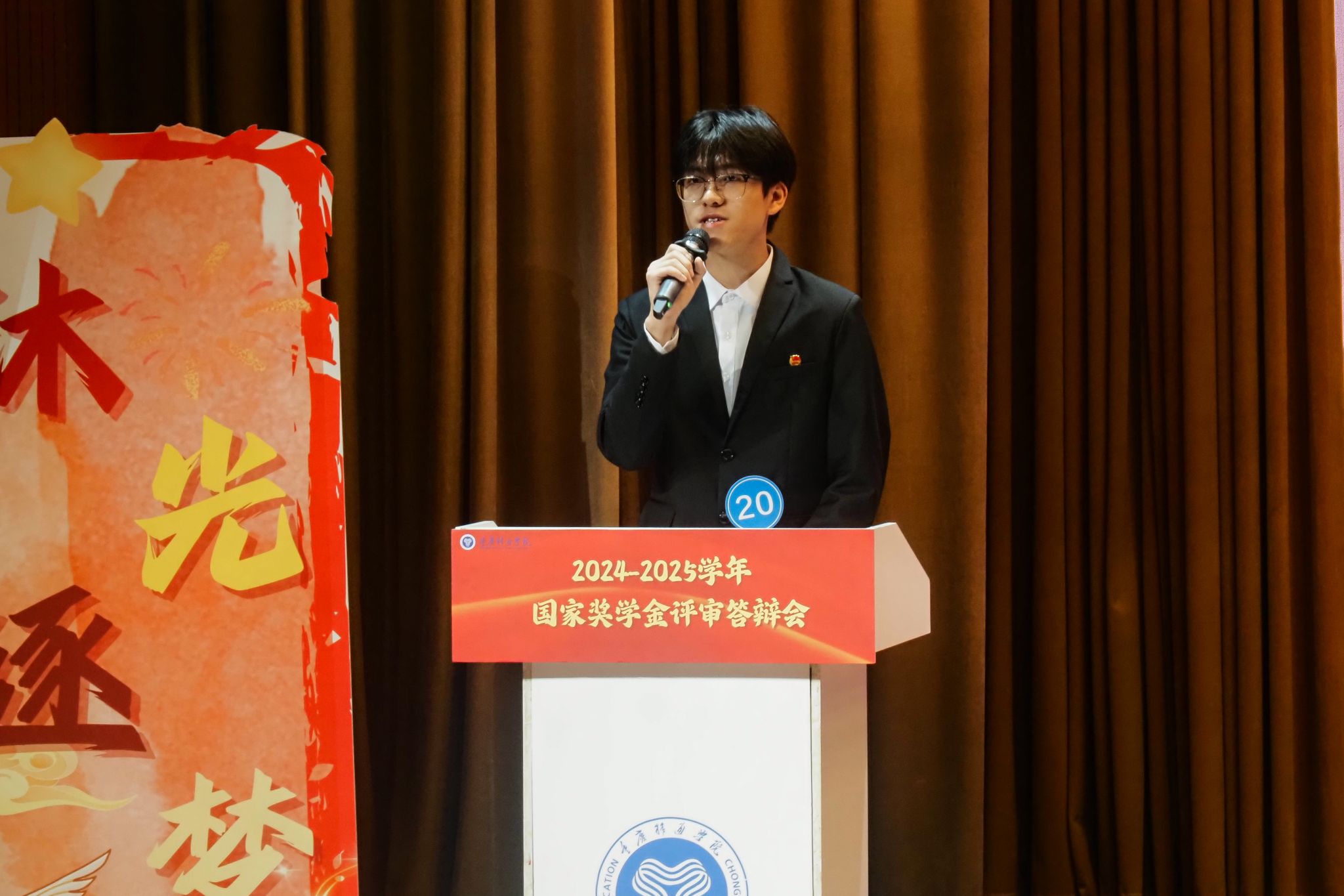 “千淘万漉虽辛苦,吹尽狂沙始到金。”评审答辩会现场,主持人介绍评委、宣读规则后,来自各学院的25名候选学子依次登台,围绕学习成绩、创新能力、社会实践、综合素质等方面展开精彩陈述与答辩,为现场师生呈现了一场兼具深度与温度的青春盛宴。最终,23名学子脱颖而出,斩获2024-2025学年国家奖学金。他们坚信,每一份努力都不会被辜负,未来也将带着这份信念继续奋进。