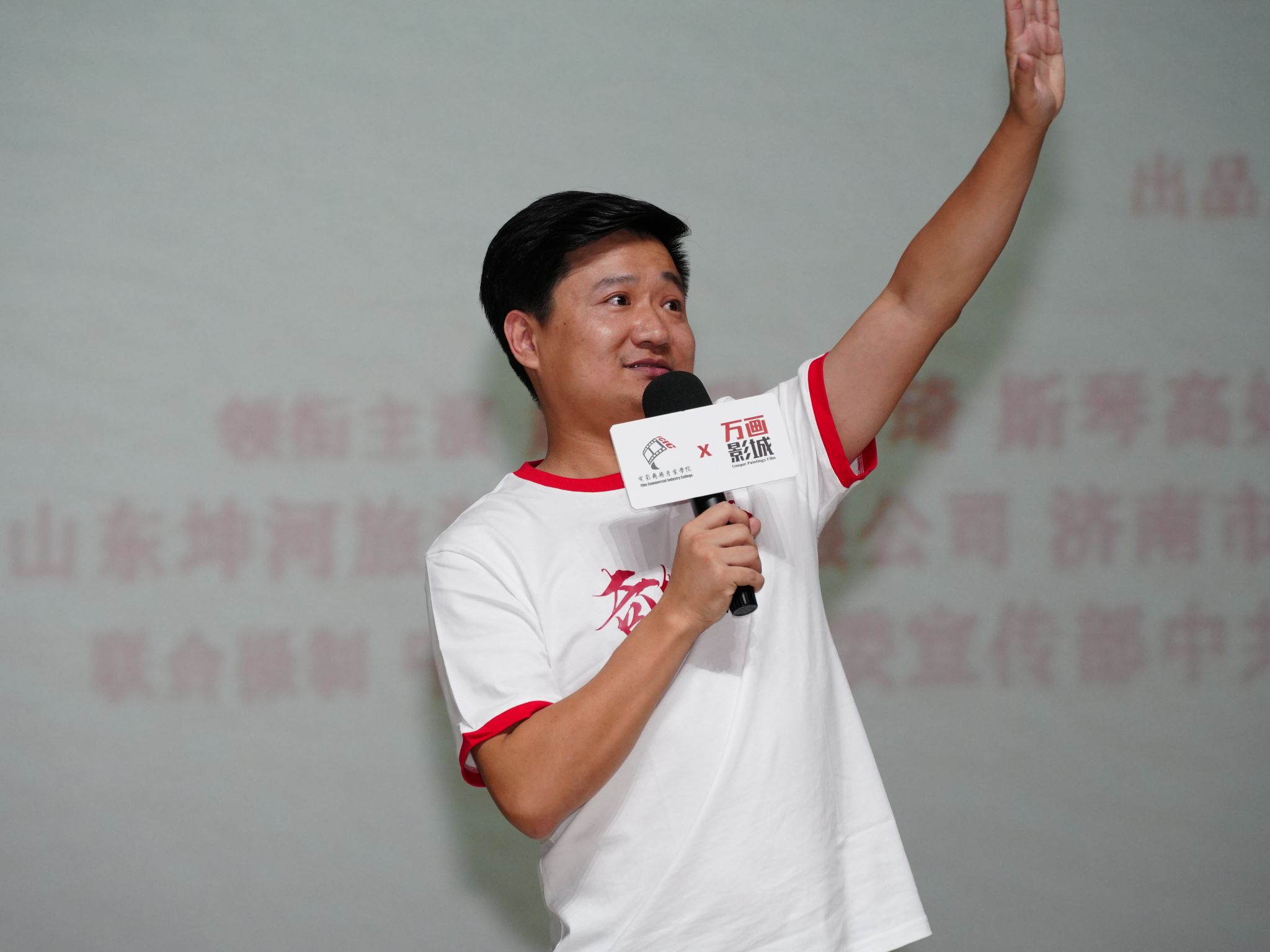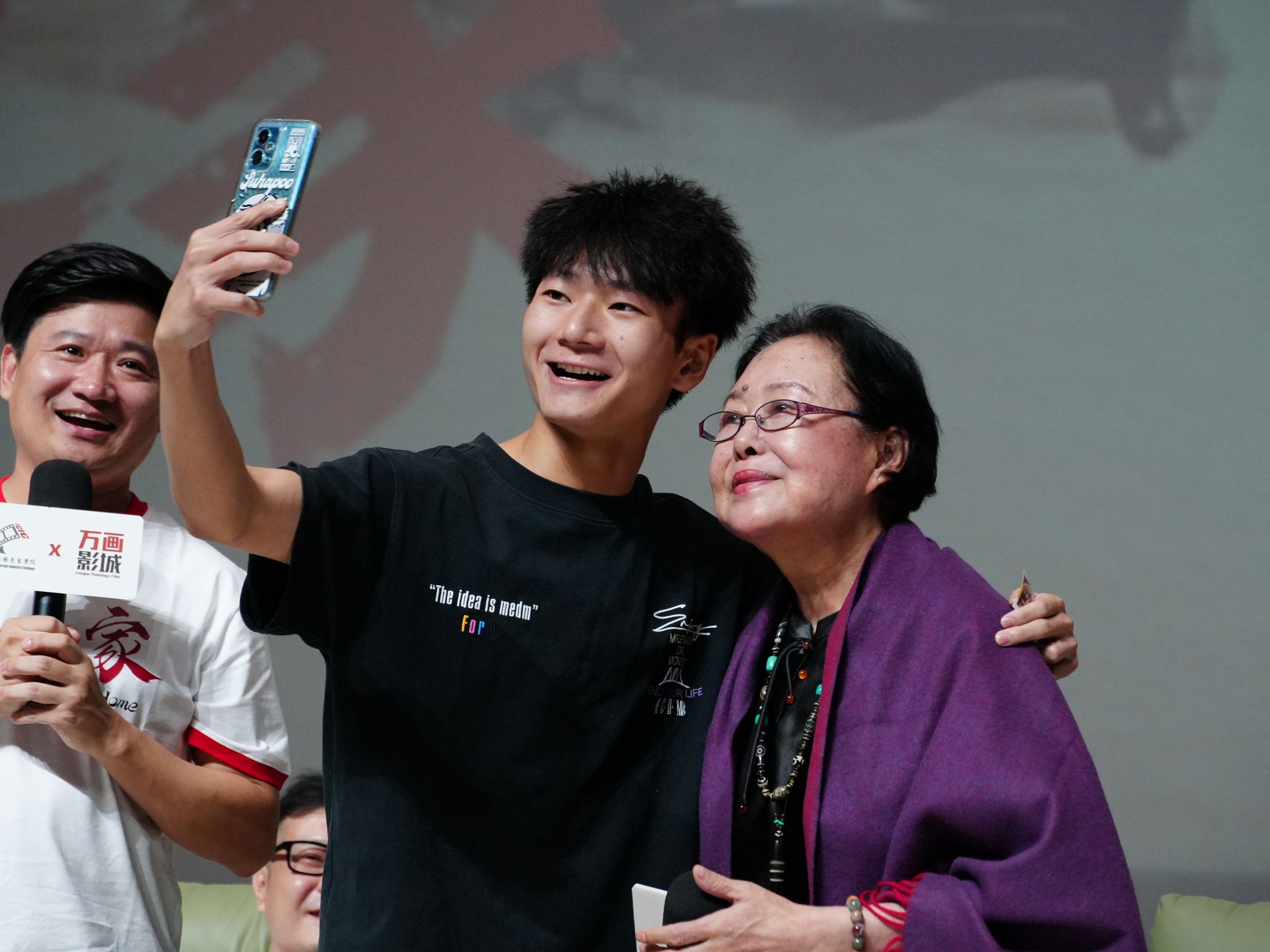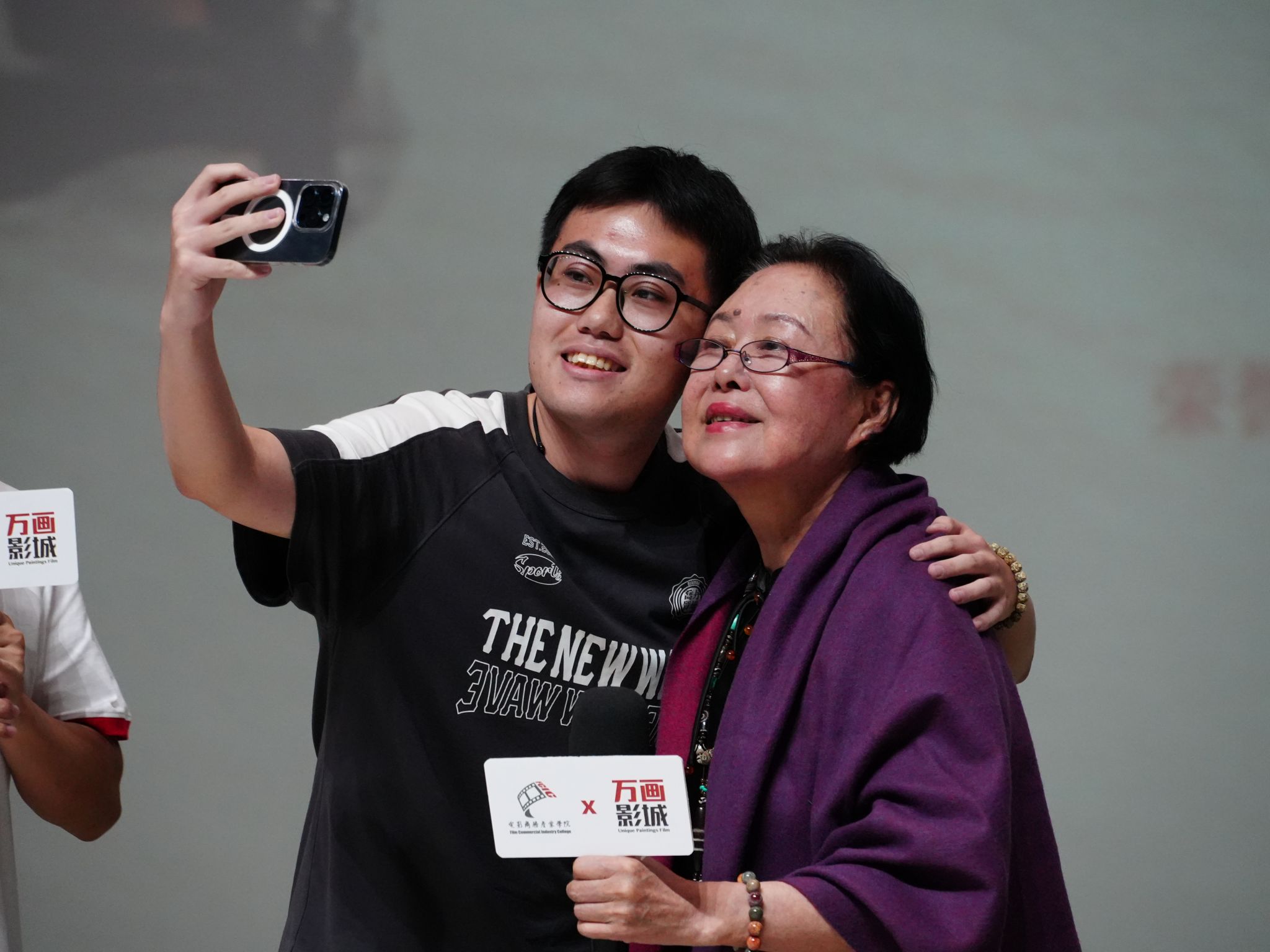当晚,巨幕厅内座无虚席。随着影片放映结束,现场响起了热烈的掌声。导演姜大伟、著名表演艺术家斯琴高娃、制片人谢文杰、演员徐日东升、演员兼歌手于涵等主创人员集体登台,与师生展开深度交流。