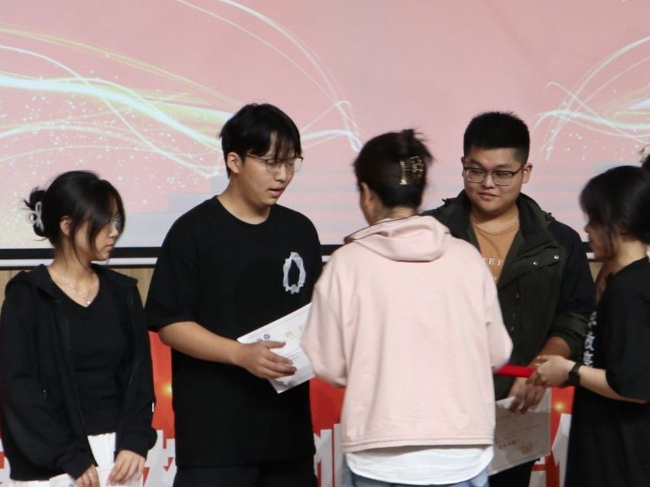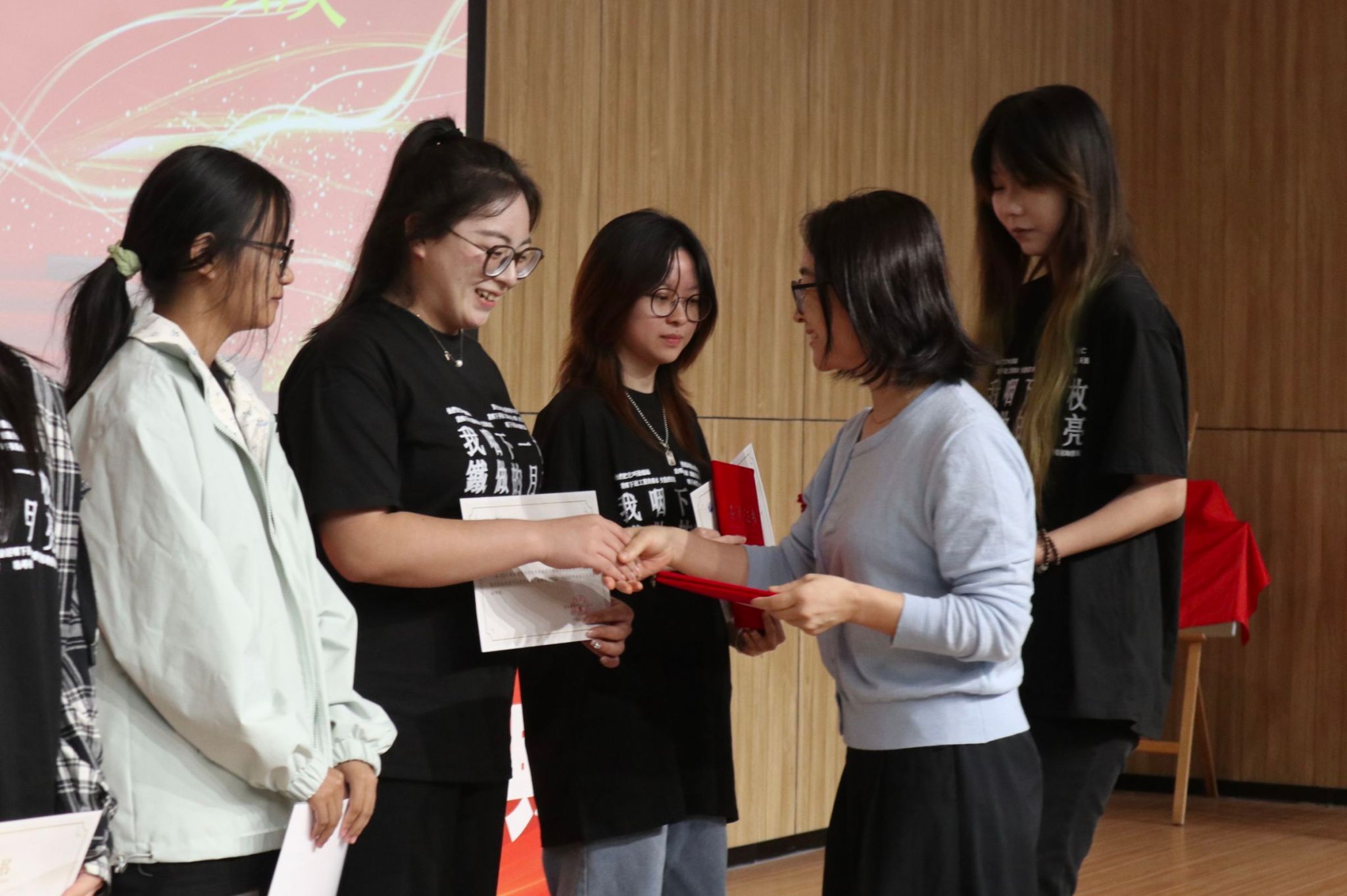 赵勤老师为刘奇、朱顺熙、肖莎莎、宋欣竹、李奕瑾、郭梅等六位优秀助教颁发“优秀助教”证书,感谢他们在教学辅助与新生引导中的辛勤付出。