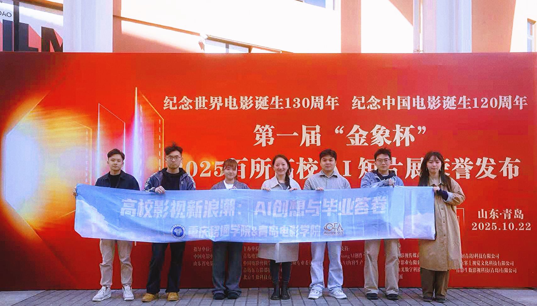 重庆移通学院艺术传媒学院由教学副院长张梅带队,广播电视编导教研室主任曹洋洋,教师李萌芮、邹伽楠、黄海春、朱智伟、刘影,受邀参与“金象杯”AI短片展。是学校近年来持续推进 “以展促教、以赛促学”教学理念的必然结果。这一实践导向的教学模式,成功推动了学生从课堂走向国际舞台,实现从技术训练到艺术表达的跨越。