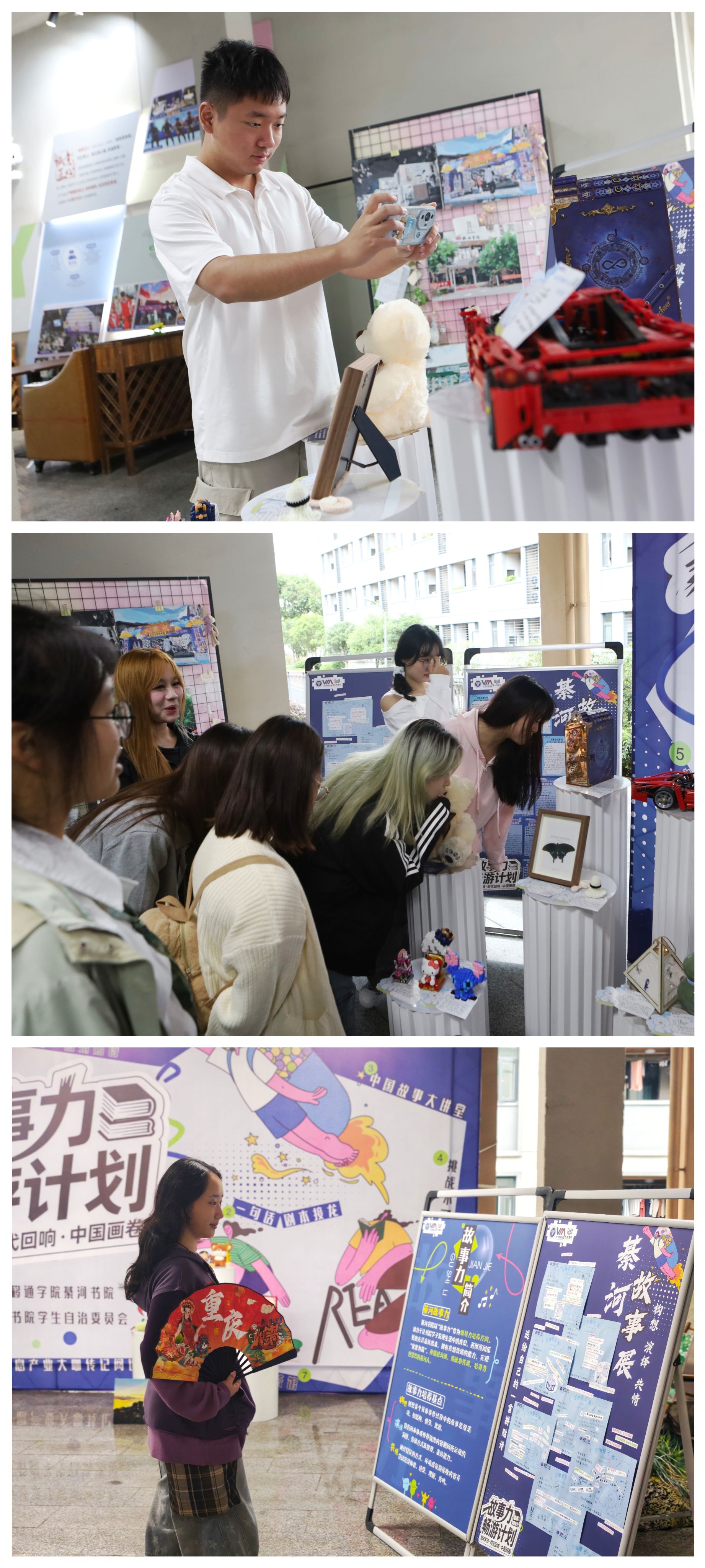 10月15日下午,一场具象化青春群像的“故事磁场”在綦河书院二号楼几何空间蔓延开,图文展板、实物陈列与互动装置,系统呈现了书院故事力教育的育人路径与学生成长的生动轨迹。同学们在沉浸式观展中,感受青春与时代的同频共振,理解个体叙事与集体记忆的内在联结。