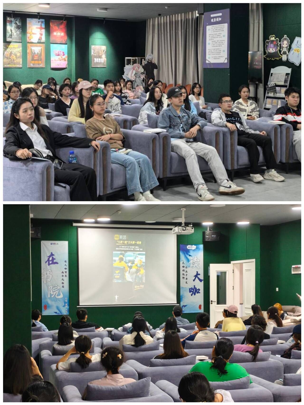 星云·影音室中綦河书院白洪雨老师正在领读信息产业精英的奋斗故事,引导学生从企业成长与个人奋斗中读懂中国发展。数字经济商学院、丁山书院倪艺萌感悟道:“原来每一个传奇背后,都是个人与国家同行的生动注脚。我们不仅要读别人的故事,更要学会讲好我们这一代人的中国故事。”