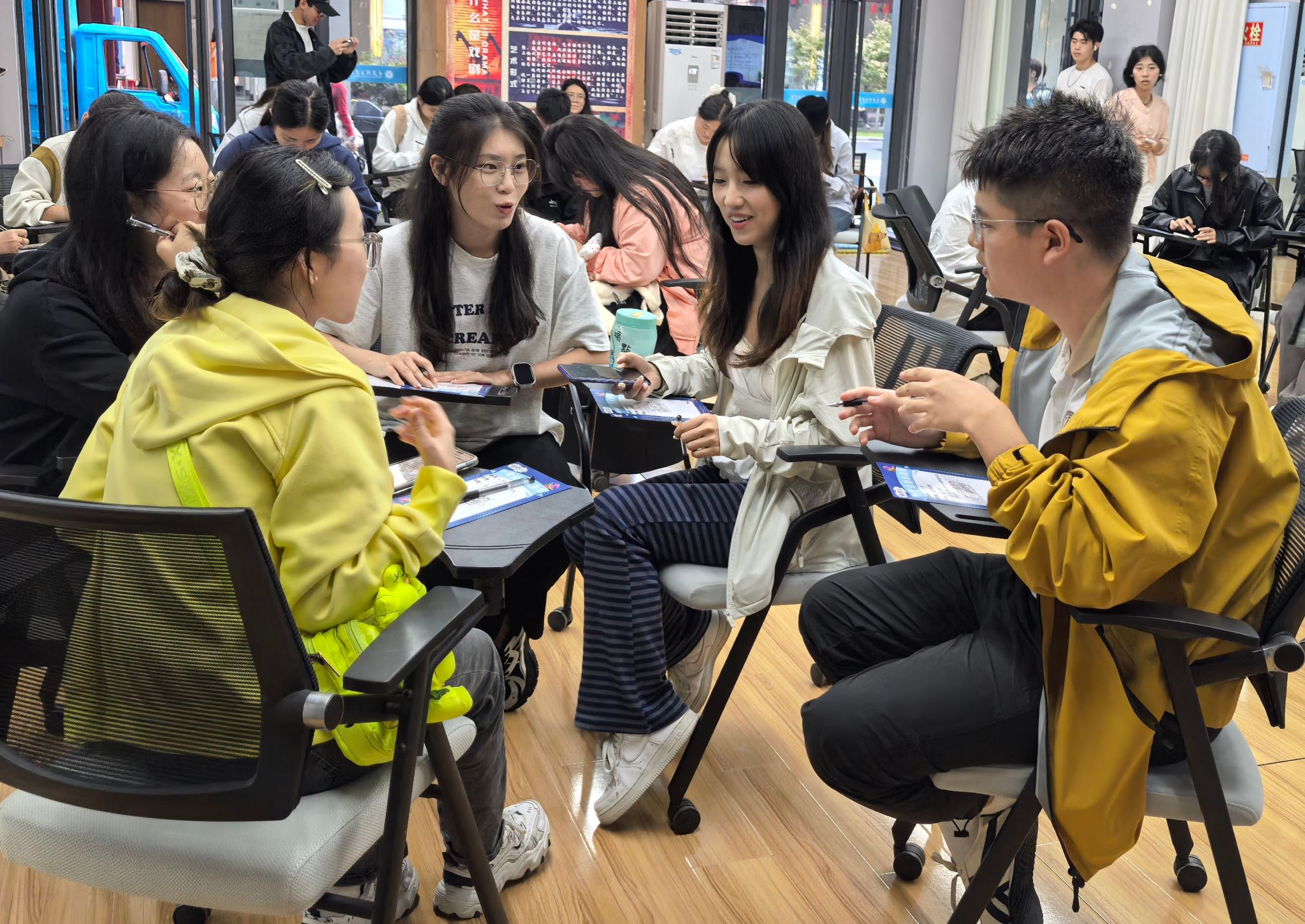 从个体微小的观察,到群体广泛的共鸣,在东篱·故事茶馆内,五十余名同学围坐一堂,以“共话中国速度”为话题,在轻松温馨的茶话氛围中,同学们以文字记录思考,以语言传递感悟,实现从个体表达到群体共鸣的深化,彰显新时代青年的思想深度与责任意识。来自大健康管理学院、綦河书院的胡佳亚同学从家乡大凉山的铁路发展出发激动的说道“交通强国,铁路先行!大凉山的铁路发展为在外求学的学生提供了非常多便利,这些发展让更多的大凉山的孩子能够走出去,欢迎大家去凉山玩!感受在中国速度扶持发展下的凉山!”