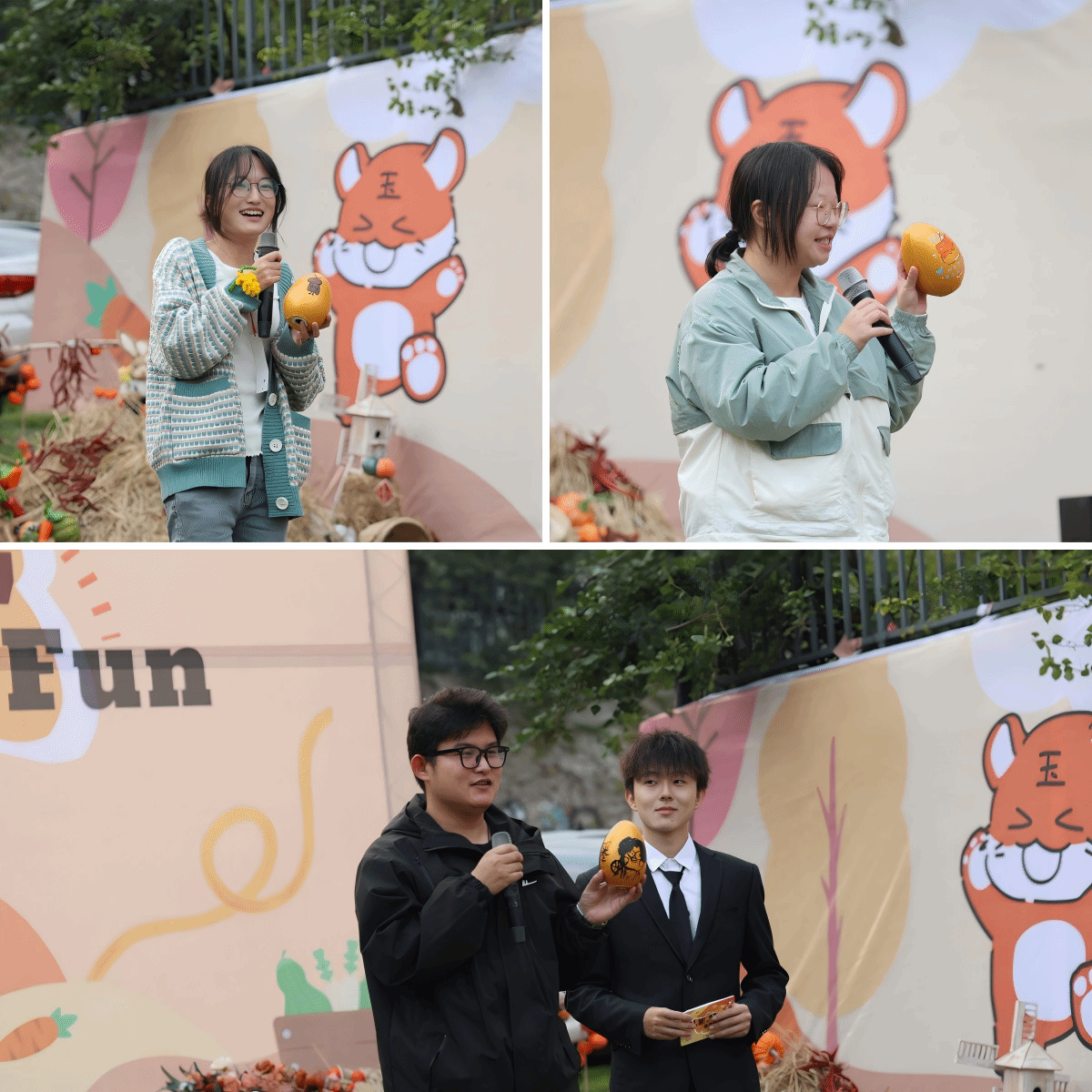如果说《红土香》是对土地的告白,那接下来的“生日彩蛋”环节,就是对“家”的童趣注解。桌上摆满金蛋与彩笔,寿星们低头画得认真:信息安全学院的李思瑶同学画了只特别的“小强”,她说希望自己未来像“小强一样坚强!大数据学院的王瀚仪同学则把玉棠吉祥物“禾午”绘于金蛋之上,“希望禾午也可以和我们一起度过一个愉快的生日会。”这些可可爱爱的线条、天马行空的想象,拼出了书院人最本真的“家”:不必华丽,却装得下所有小期待。随后,“书院好声音”选手张诗劼、匡丽君带领全场唱起《稻香》。“还记得你说家是唯一的城堡……”有人跟着一起哼唱,有人跟着节奏晃脑袋。此刻,“家”不再是远方,是身边画彩蛋的人、一起等蛋糕的人,是所有共同制造的温暖碎片。