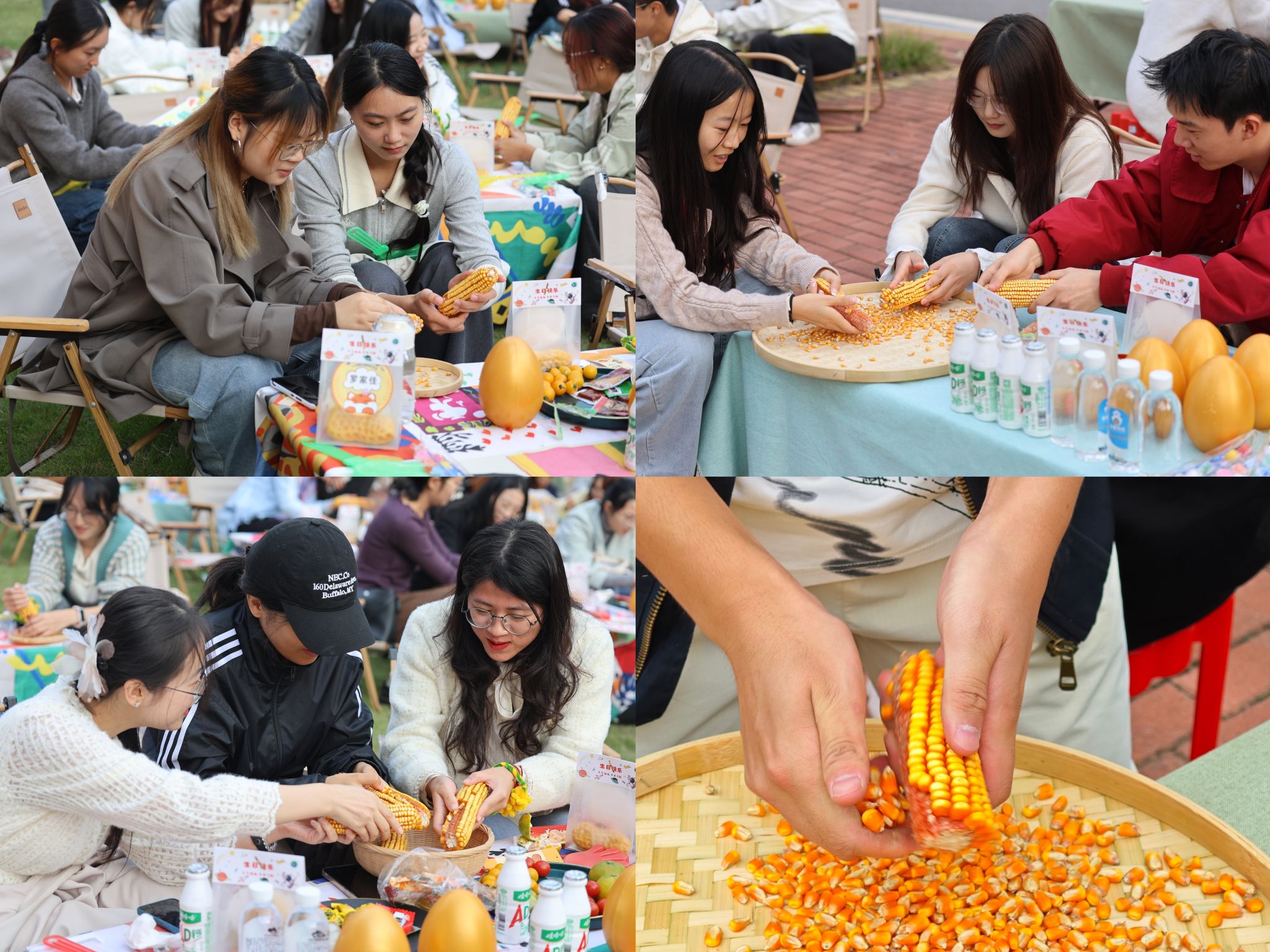 在欢乐的“爆米花大挑战”环节中,师生寿星们围坐一堂,指尖翻飞,金黄的玉米粒如雨珠般清脆洒落。工作人员接过装满玉米的竹篮,倒入爆米花机投料口。随着温度攀升,白雾裹着甜香从机盖缝隙钻出,随着“劈里啪啦”的声响,玉米粒在热气中绽放成朵朵洁白的爆米花,香甜的气息瞬间弥漫整个空间。“自己剥的玉米做成爆米花,味道是不太一样!”来自信息安全学院的王洪波说道。从手剥玉米到机器成香,这场“劳动接力”藏着最朴素的育人课——正如书院常说的“手有温度,心有归处”,亲手创造的甜,才是最扎实的“丰收”。