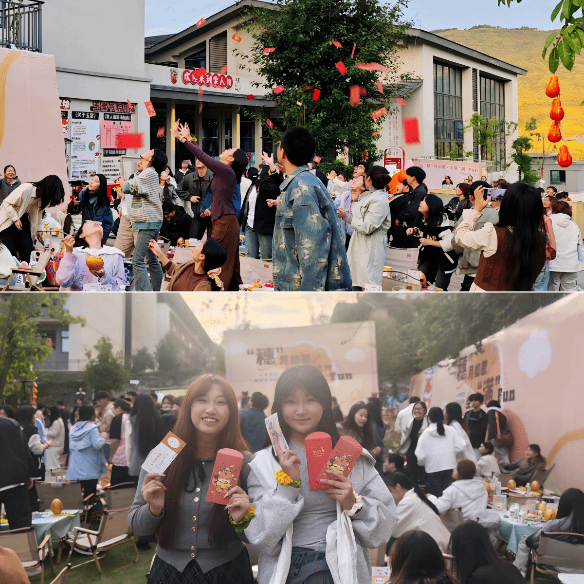 十月金秋,微风里飘着丰收的甜香,连空气都裹着点“要出惊喜”的热乎气——由重庆移通学院綦江校区书院部、工会委员会主办,玉棠书院承办的“穗”月如歌·生辰“满”Fun十月师生集体生日会于10月22日在玉棠书院外草坪举办。没有华丽的辞藻,只有劳动的烟火、熟悉的歌声,还有无人机撒下的红包雨,这场以“丰收”为名的生日会,用最本真的模样,诠释着移通学院“家文化”与“社区共生”的温暖内核。