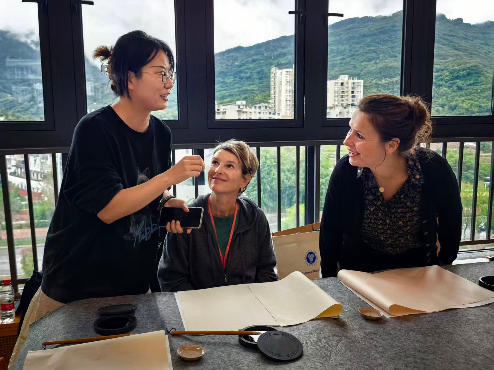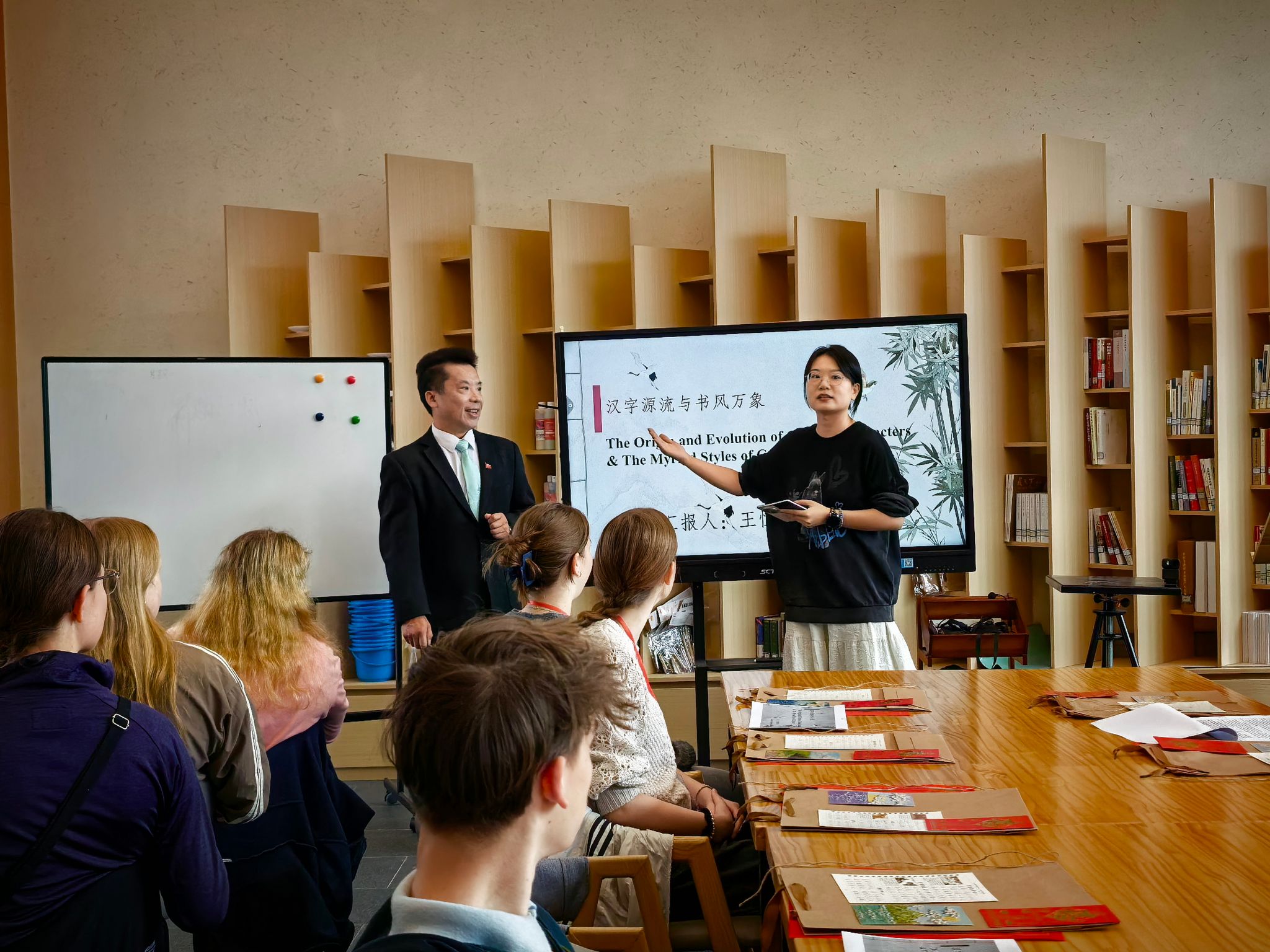 “中华民族五千年的文明足够奢华,我们要让德国师生透过汉字,看见中华文明的根与魂。”早在研学团到访前,创意写作学院副院长苏瓷瓷便牵头组织核心教师团队召开专题会议,敲定课程主题与框架。考虑到文化传播的专业性与趣味性,团队最终决定以“汉字演变史”为主线,搭配丰富的互动环节,让抽象的文字历史变得可感、可触、可体验。