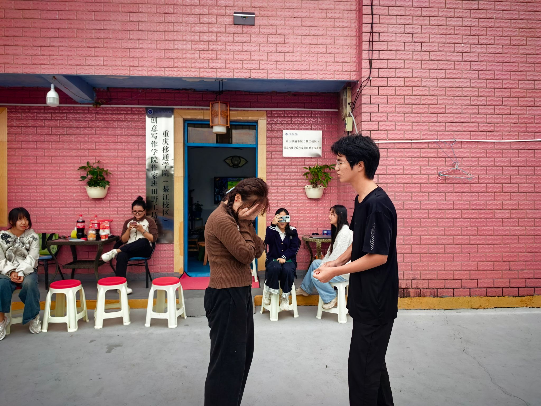 10月19日下午,微风,微冷,2025级作家班田野工坊迎来第一期创意写作学院作家班学生,非虚构工坊的师生们在王恒绩老师的农家小院热闹开讲。七组男女学员两两搭档,现场创作“战场上恋人分别”的台词,用真挚的演绎将战火中的深情娓娓道来,小院里掌声与感动交织。课程尾声,王恒绩老师以余光中《乡愁》为引例,讲述诗歌背后的家国情怀,更以歌声传递对祖国统一的期盼,这场融合创作、演绎与家国情怀的课堂,成为同学们难忘的文学记忆。