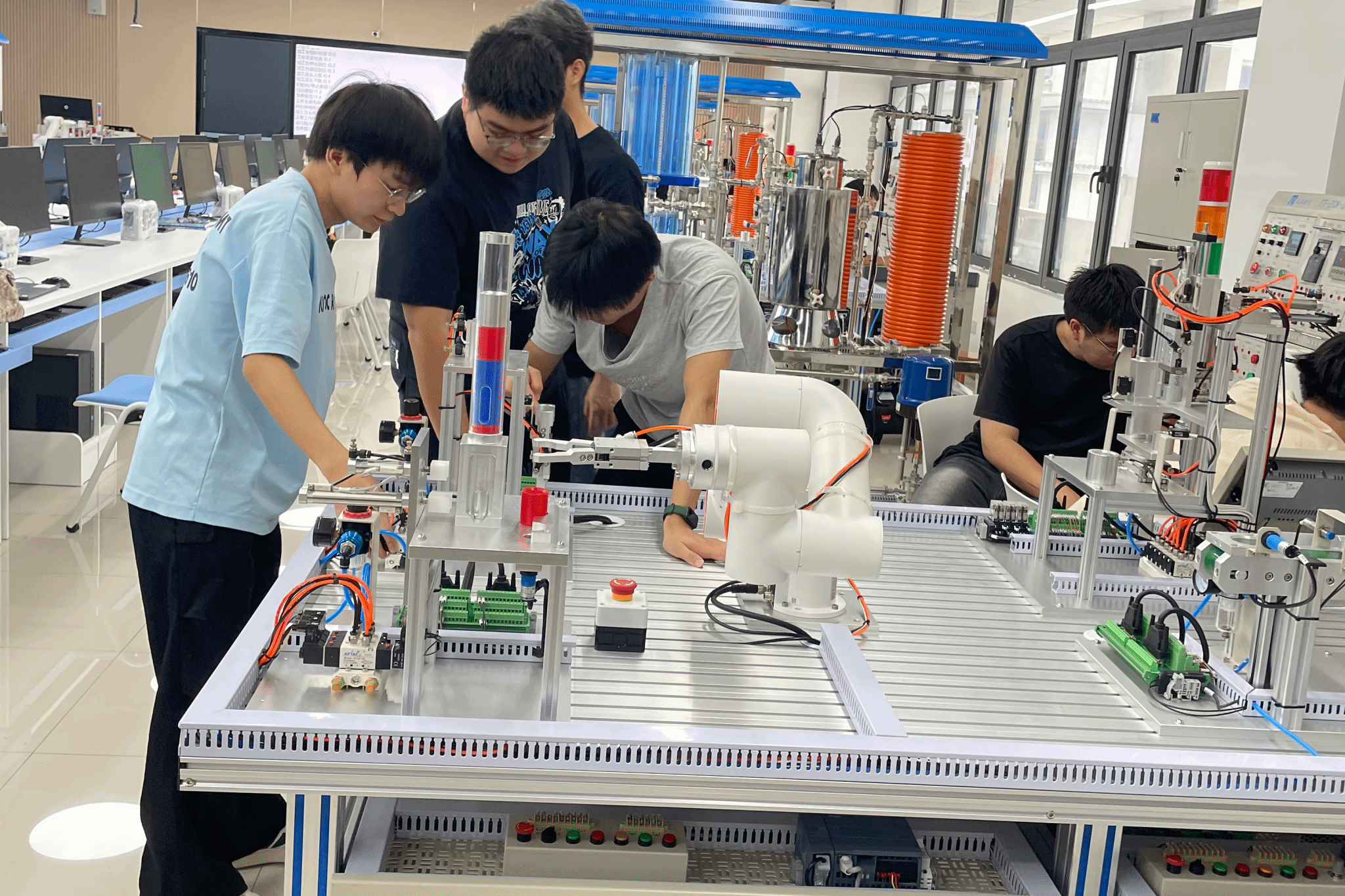 为强化智能工程学院自动化专业学生的实践操作能力,衔接理论知识与工程应用,帮助学生提前适应岗位需求,智能工程学院于9月22日至30日,为2022级自动化1班和2班的学生分别组织开展了为期五天的校内集中毕业实习。本次校内集中毕业实习特邀浙江天凯教学仪器有限公司资深工程师郭国彬主讲,实习聚焦自动化领域核心技术与实操应用,通过理论讲解、案例实训的模式,让学生在沉浸式实践中深化专业认知,提升工程实践素养。