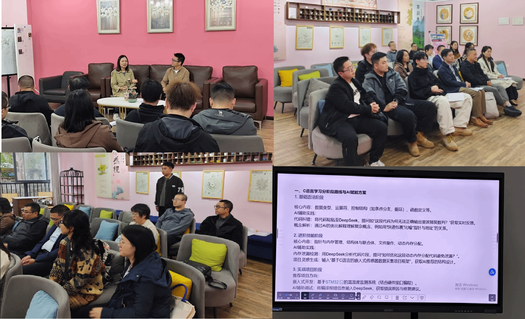 在研讨会上,专家首先针对智能工程学院C语言程序设计课程的现状进行了深入剖析,特别指出了知识衔接、实践案例和教学评价等方面存在的痛点问题,并精准地剖析了问题根源。随后,专家提出了一系列极具建设性的建议。专家强调,C语言程序设计课程应与嵌入式系统紧密结合,通过完成嵌入式开发中的程序部分,使学生能够实际制作出具体的产品,从而显著提升学生的学习兴趣和实践能力。此外,专家还分享了PTA程序设计类实验辅助教学平台的丰富资源。该平台拥有海量的教学题库,题目数量达到数十万道,覆盖百余门课程,这些题目由千余所高校的一线教师共建共享,是获得国家教学成果一等奖的重要支撑资源。专家指出,利用这一平台可以有效辅助教学,提升学生的学习效果。同时专家还介绍了常用的AI编程工具,并针对学生频繁使用AI工具的现象,提出了制定明确规则以引导学生正确使用的观点,旨在平衡技术创新与学术诚信,确保学生能够合理、有效地利用AI技术提升学习效率。