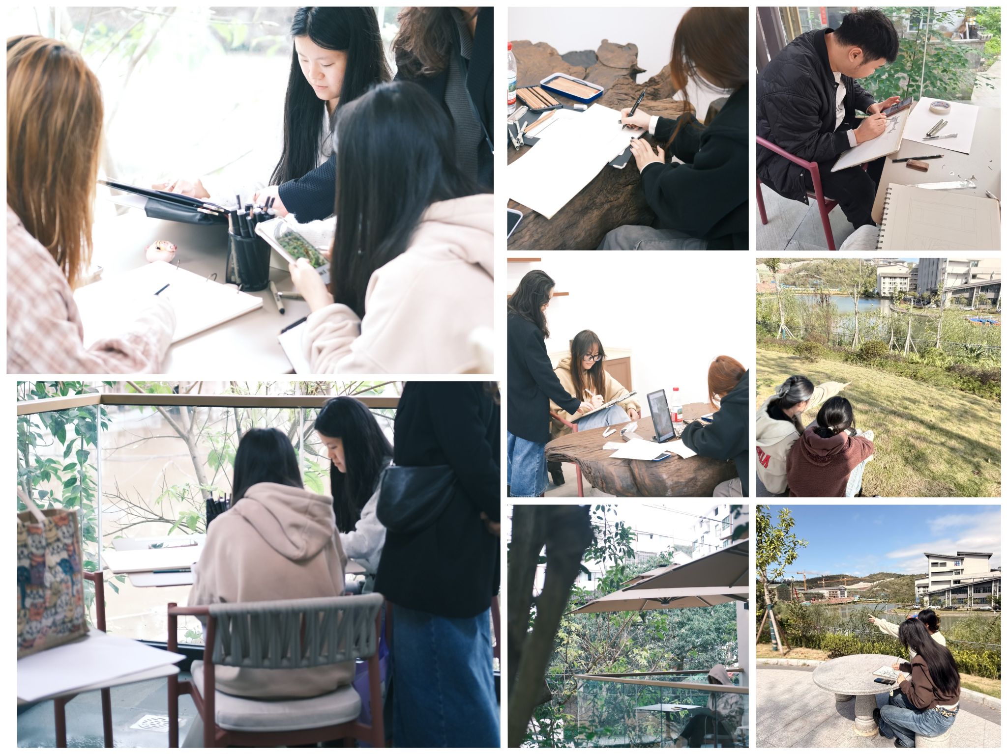 在教学实践过程中,师生们积极运用数字化技术手段,构建起“采集—处理—分析—创作—输出”的全流程数字化教学生态。通过现代技术,对古镇的传统建筑肌理、空间形态与文化景观进行全方位记录。晚间,师生们对采集资料进行整合处理,并通过集体研讨、案例分析等方式,深入挖掘传统文化元素的现代转化路径,实现了科技手段与文化传承创新的深度融合。