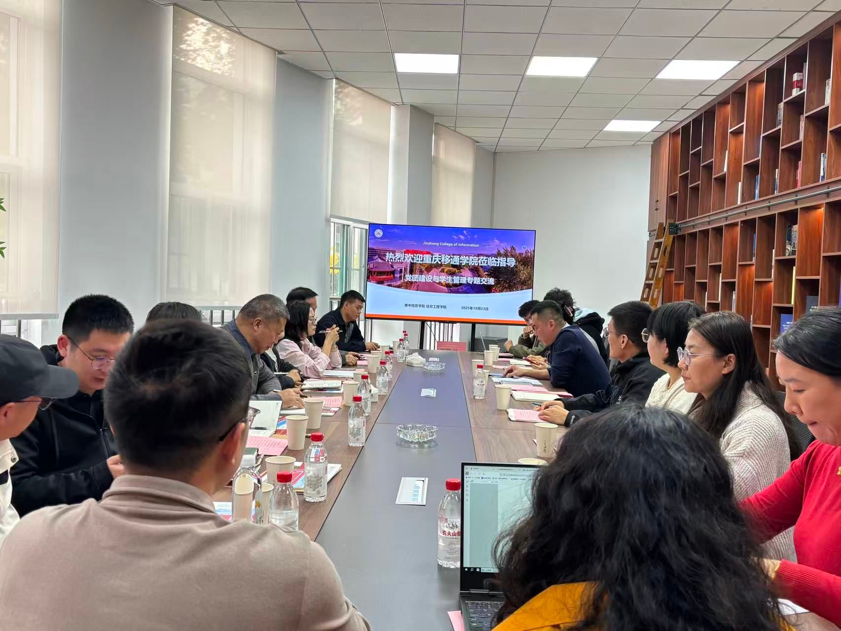 10 月 23 日下午,交流活动以 “党团建设与学生管理” 专题座谈会拉开序幕。晋中信息学院信息工程学院党总支书记、院长王龙,教学副院长杨倩倩、学工副院长武海鹏,团总支书记侯林莉等领导班子成员热情接待交流团,三方围绕育人管理体系展开深入探讨。