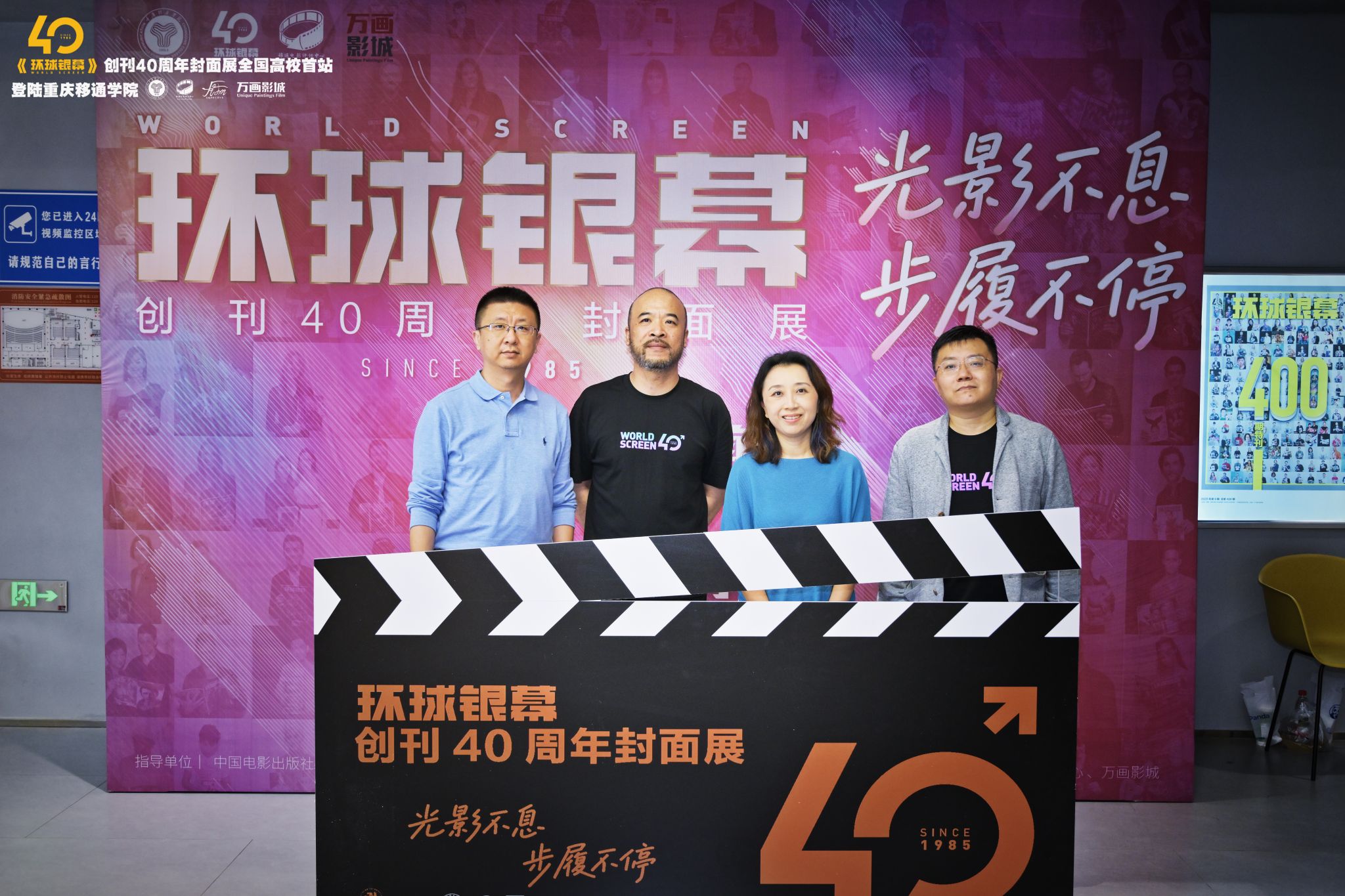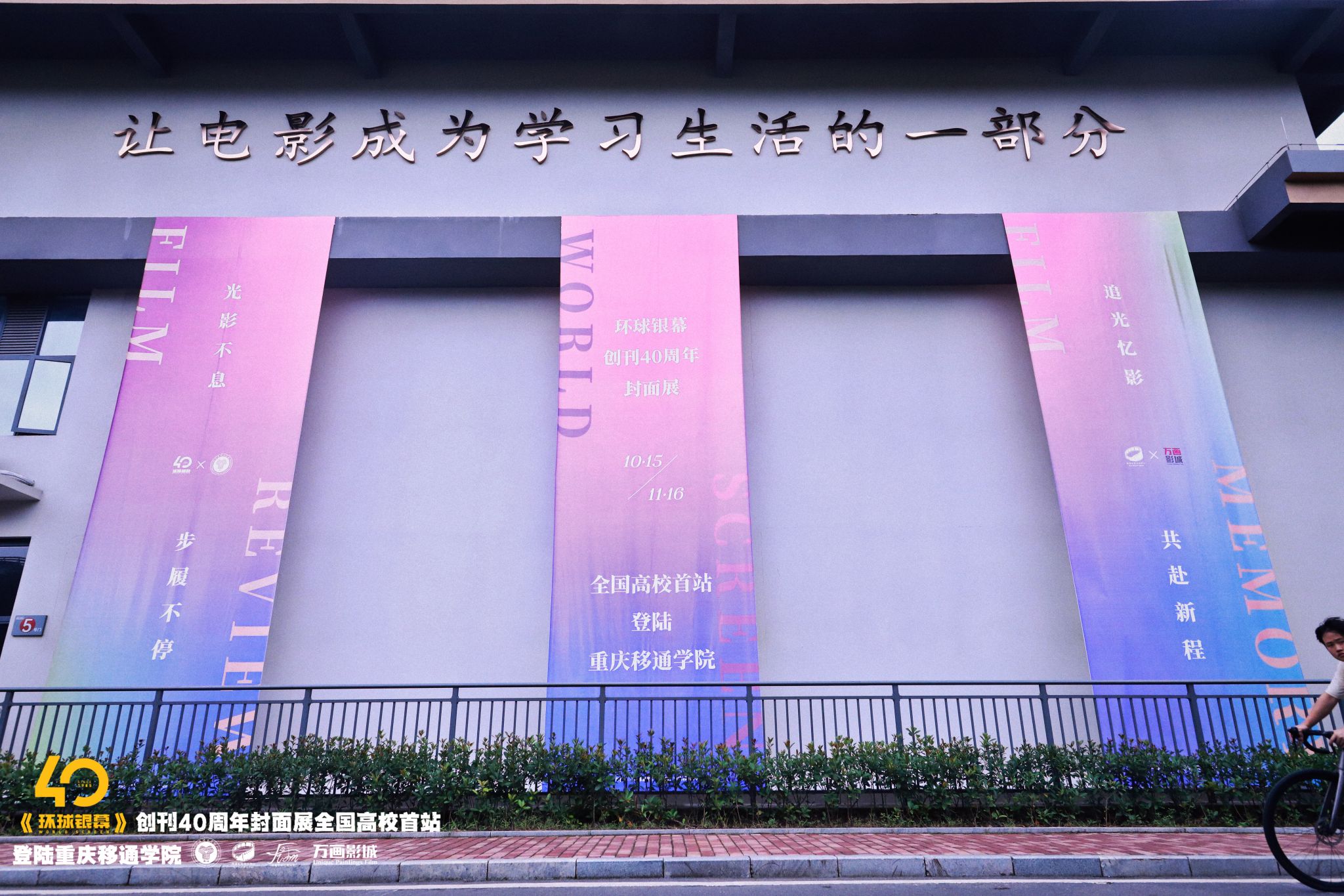 近日,《环球银幕》封面展全国高校首站登陆重庆移通学院綦江校区。《环球银幕》作为中国第一家全彩的电影画刊,于1985年创刊 ,引导和见证中外影视文化交融的全过程,创刊40年来一直致力于世界范围内的电影介绍和评论。10月15日,《环球银幕》创刊40周年封面展在重庆移通学院綦江校区万画影城顺利开幕,与万画影城巨幕厅经典影片放映专场和封面展打卡游园会场同步开展,给许许多多的参展者留下了深刻的印象。《环球银幕》主编曹锎、银幕空间(北京)文化传媒有限公司总经理陈世亚与银幕空间(北京)文化传媒有限公司副总经理董海作为嘉宾莅临现场。