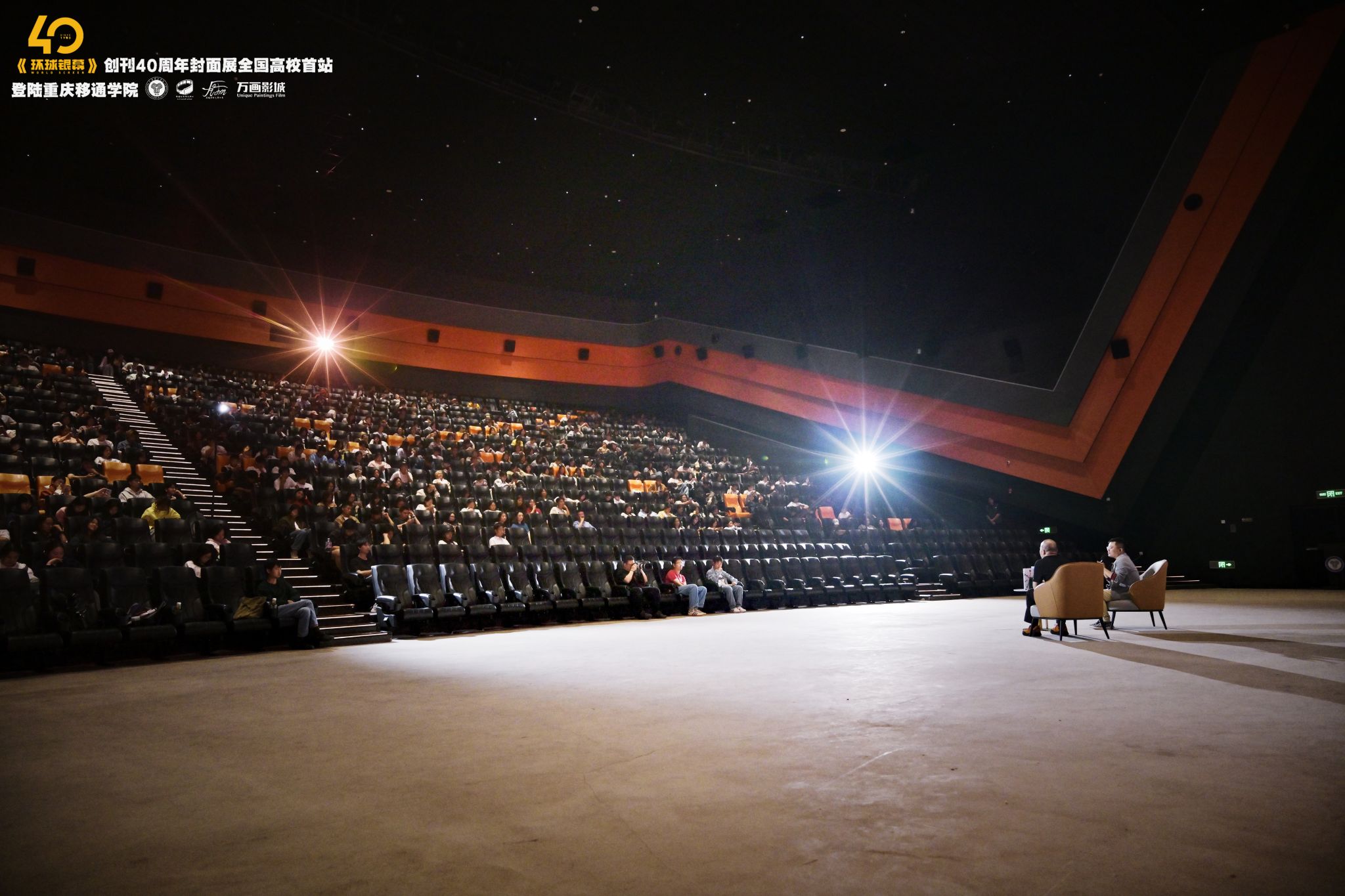 万画影城巨幕厅经典影片放映专场影片为《社交网络》,吸引近700名同学前来观影。在映后特邀银幕空间文化(北京)传媒有限公司总经理陈世亚与《环球银幕》主编曹锎作为嘉宾莅临现场。两位老师分别从专业角度对《社交网络》进行了点评,并阐述了其得以入选《完全电影130年》的核心价值与时代意义。两位老师作为《环球银幕》的主编和总经理,分享了《完全电影130年》这一重磅项目的制作初衷、策划要点与独特的策划思路,为现场的同学们揭开了这本权威电影杂志背后的面纱。从电影史到《环球银幕》发展史,对话徐徐展开,一场关于电影人、电影行业从业者与电影爱好者的对话将同学们带入了一个从未踏足却足够热爱的领域。