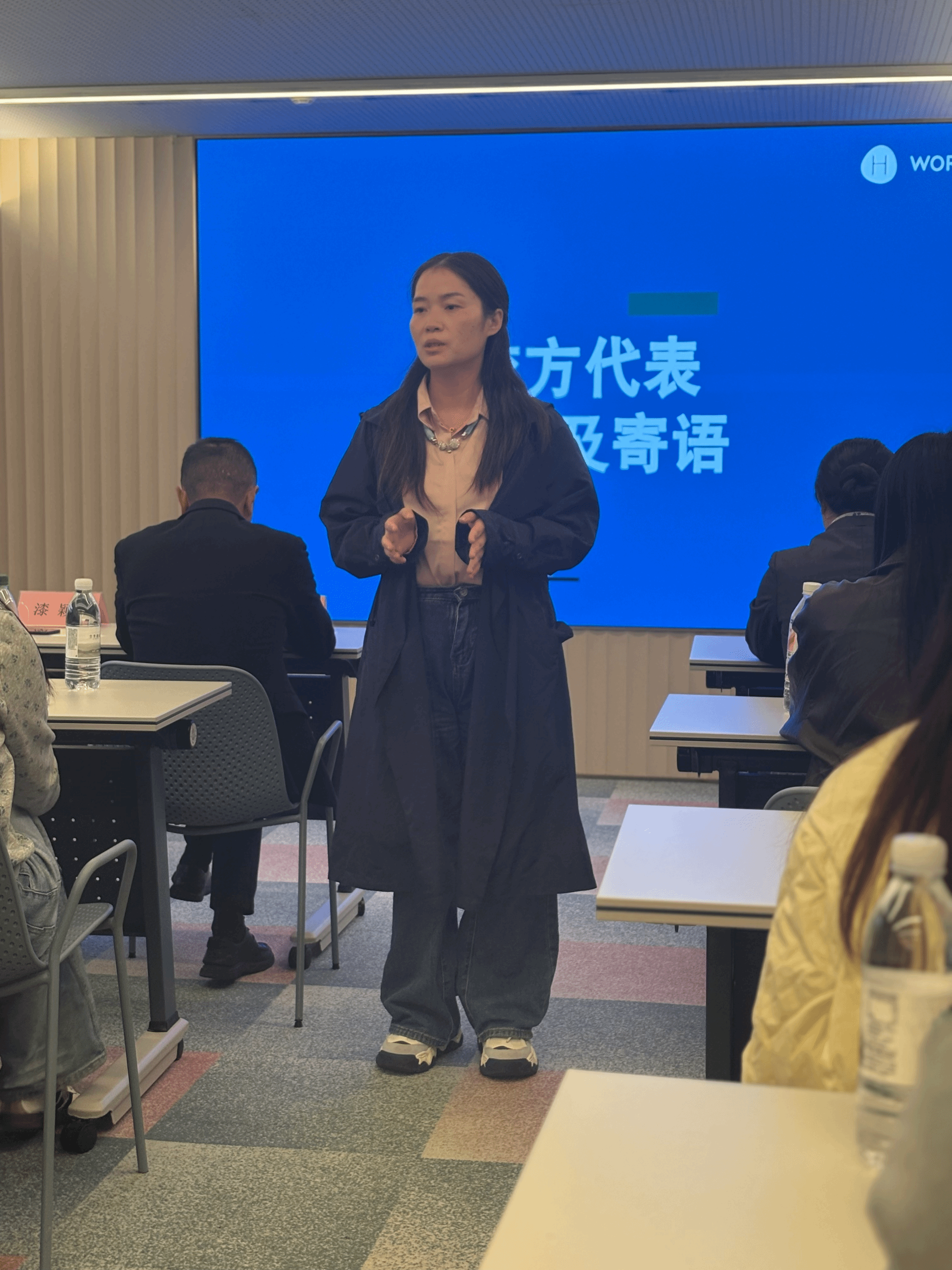 重庆移通学院领队代表漆颖老师在发言中,鼓励同学们珍惜这次来之不易的实习机会。她表示,希望同学们能以空杯心态投入实习,在实践中主动求知、积极探索,将课堂所学与企业实践深度融合,在华住集团的平台上展现移通学子的风采,为未来职业发展积累扎实的实践经验。