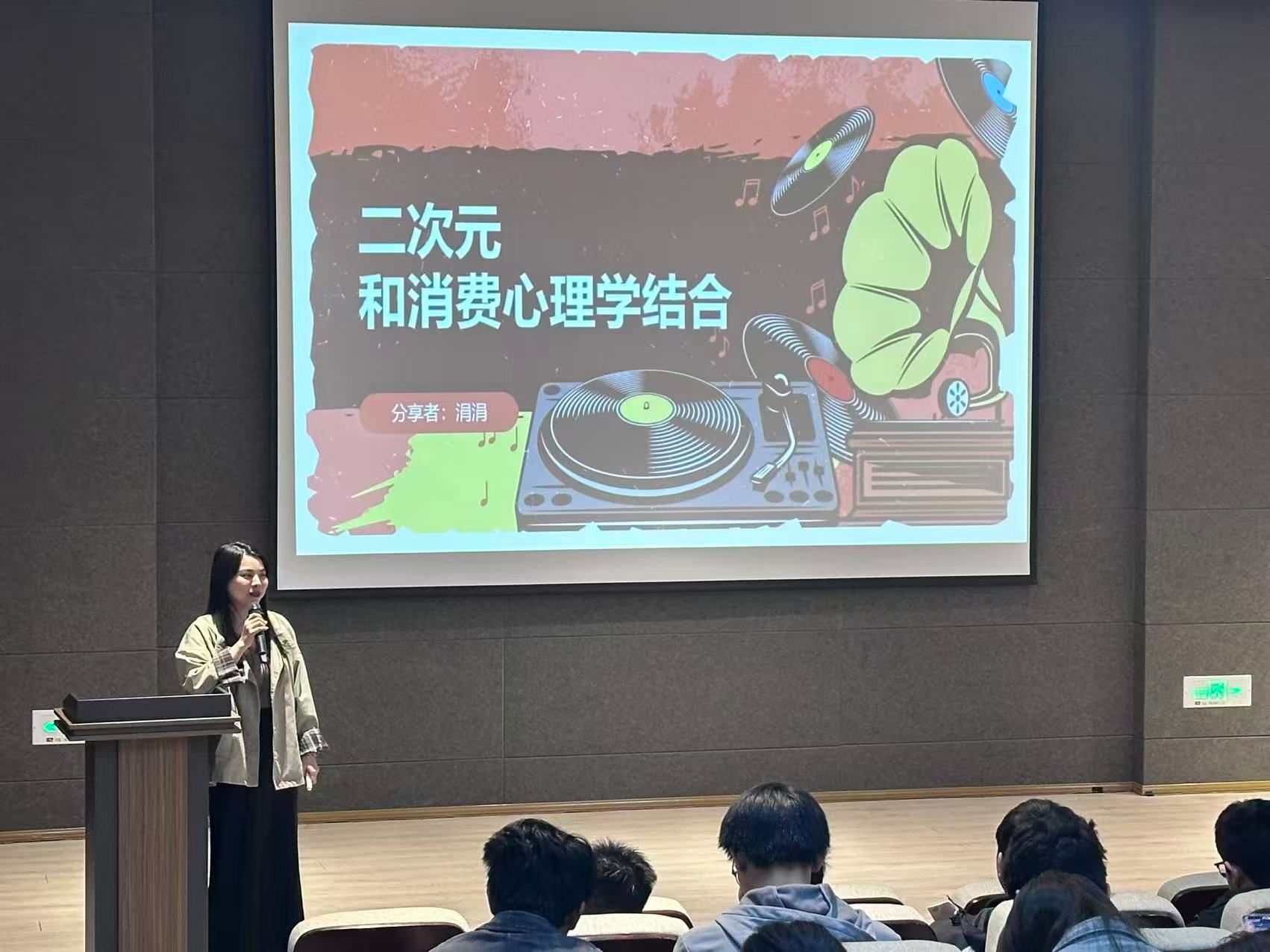 张总监跳出传统理论框架,直接将当下热门的二次元IP、虚拟偶像、联名商品等作为案例分析对象。她深入浅出地剖析了“为爱付费”、“情感投射”、“社群归属感”等心理因素如何驱动二次元用户的消费行为。在这个领域,消费者购买的不仅是商品,更是一种情感认同和身份标签。她将专业的消费心理学理论与生动的商业案例相结合,讲解了如何利用“角色赋能”等策略激发购买欲望,并科普了一些“妆娘”、“毛娘”、“委托”等二次元词汇,也给同学们带来了二次元周边,现场学生兴趣盎然,气氛活跃。