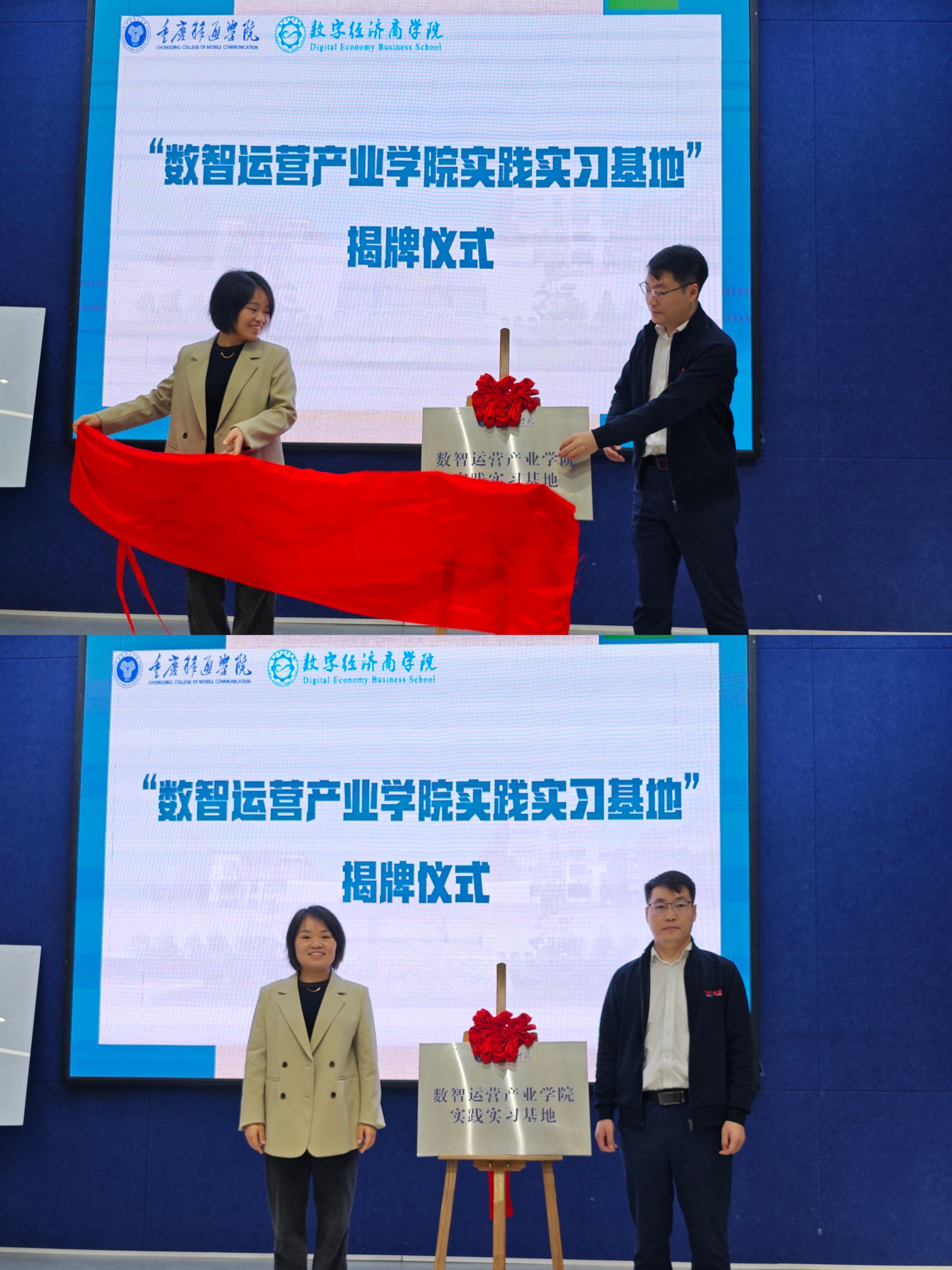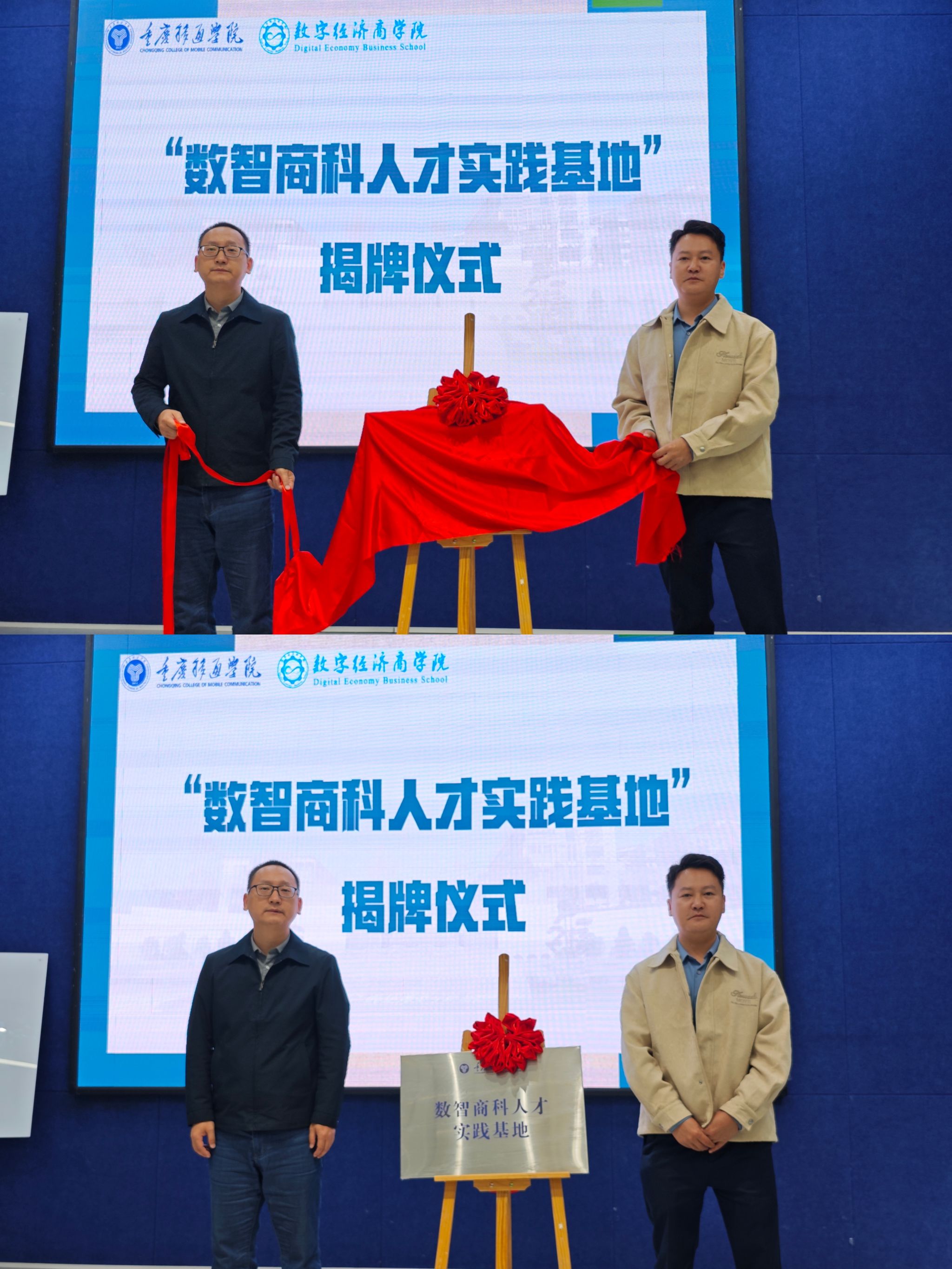 在全场的期待中,王永周副校长、徐福年理事长、谢银平校长助理、李志良理事、范保珠副院长、印灿理事共同为 “数智运营产业学院实践实习基地”“数智商科人才实践基地”“数智运营产业学院共建单位” 3 块牌匾揭牌。红布落下的瞬间,标志着校企合作迈入实质性阶段,也为人才班同学提供了从学习到实践的一站式成长空间。