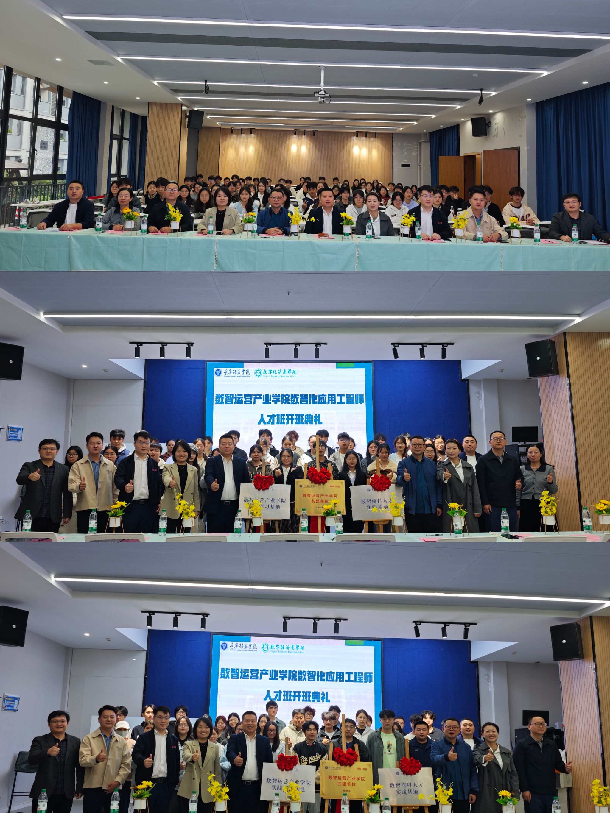 最后,数智化应用工程师人才班全体成员与领导嘉宾合影留念,开班典礼在热烈的氛围中圆满结束。此次开班典礼不仅是人才班的启动仪式,更是重庆移通学院深化产教融合、赋能数智人才培养的又一重要举措,为区域数智产业发展注入了新的人才活力。