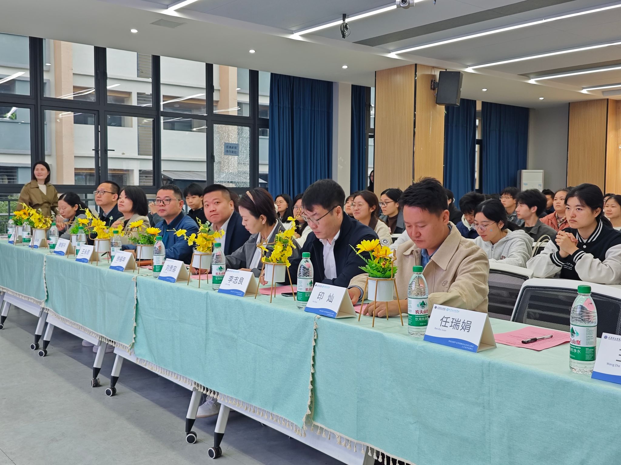 典礼伊始,主持人王哲介绍参会人员,新道科技股份有限公司徐福年理事长(数智运营产业学院副院长)、李志良理事、印灿理事,重庆移通学院常务副校长王永周、校长助理谢银平、数字经济商学院院长刘贵容(数智运营产业学院副院长)、数字经济商学院副院长王哲(数智运营产业学院副院长)、数字经济商学院副院长范保珠、数字经济教研室主任陈明燕、数智运营产业学院负责人,数字运营产业学院老师及全体学生出席典礼,为人才班开班注入强劲动力。