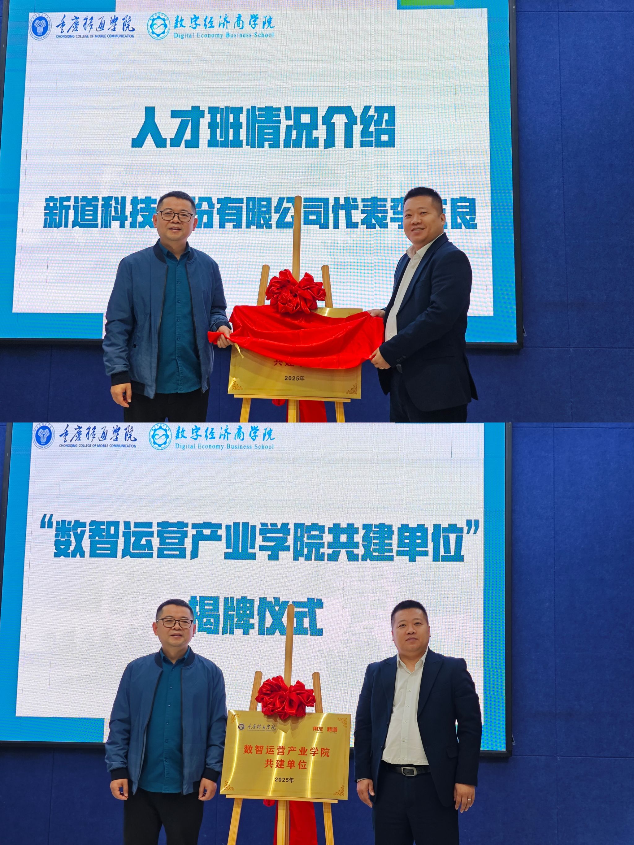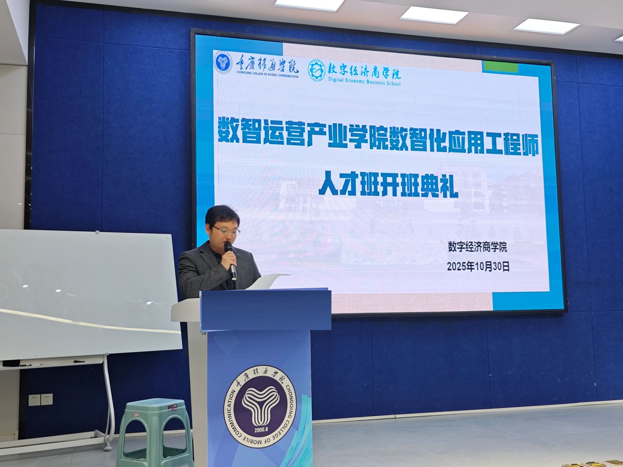 为深化产教融合,培养数智化应用工程领域专业人才,2025年10月30日上午9:00,重庆移通学院数智运营产业学院数智化应用工程师人才班开班典礼在綦河书院观涛报告厅隆重举行。新道科技股份有限公司重庆分公司代表、学校领导及数智化应用工程师人才班全体同学齐聚一堂,共同见证这一重要时刻。