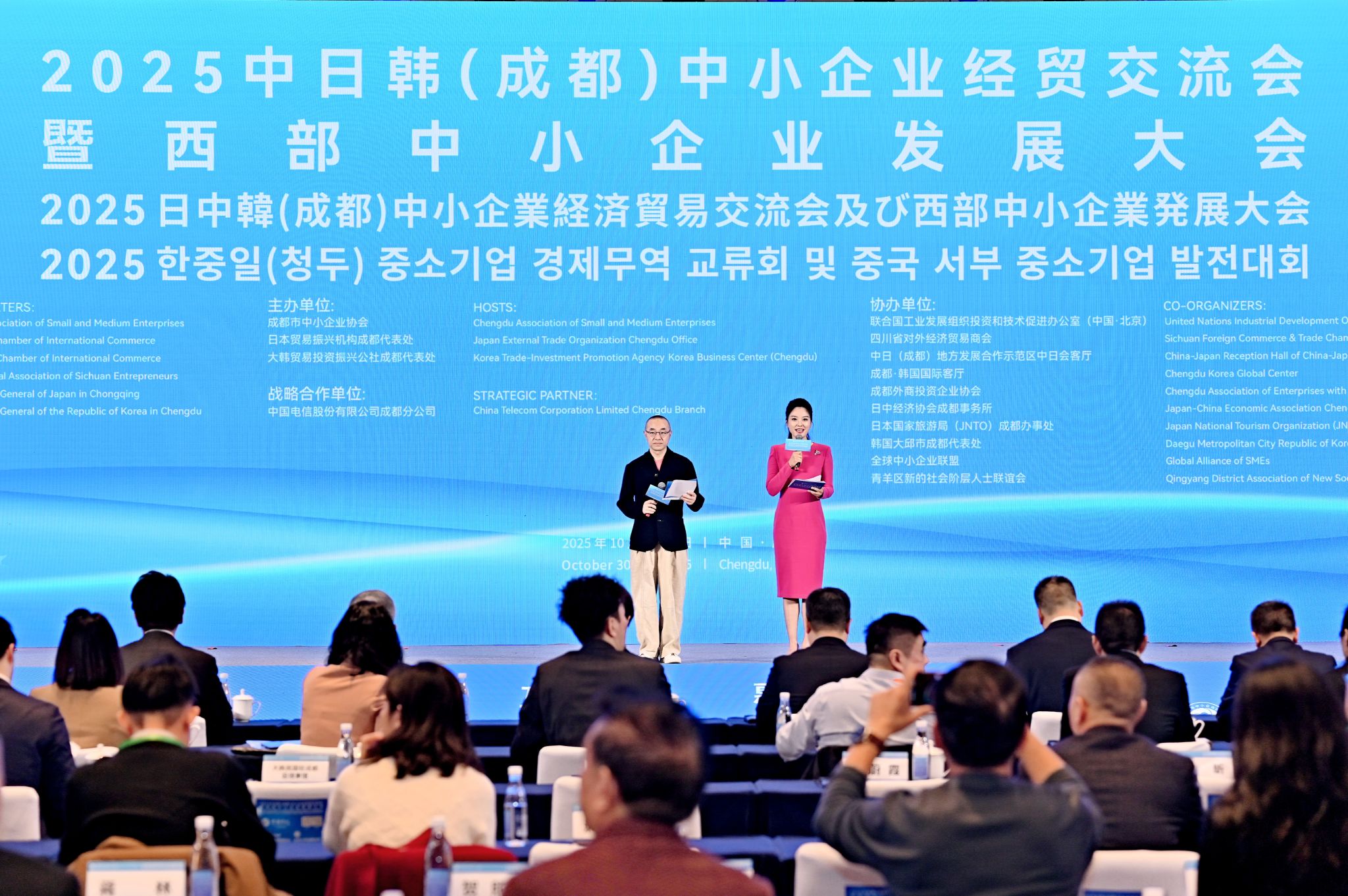 10月30日至31日,2025中日韩(成都)中小企业经贸交流会暨西部中小企业发展大会在成都隆重举行。受大会组委会邀请,重庆移通学院校长助理兼淬炼商学院院长、重庆市中小企业发展促进会副会长张平,重庆移通学院淬炼商学院执行院长曾璐、淬炼商学院冲突营销学院副院长何景平、淬炼商学院基础教研室袁黎黎与晋中信息学院淬炼商学院、泰山科技学院淬炼商学院教师代表共同参加此次大会。在10月31日上午的重要合作环节中,学校与成都市中小企业协会正式签署“产教融合战略发展”战略合作协议,双方将携手搭建校企协同发展平台,为成渝地区中小企业高质量发展注入人才与智力新动能。