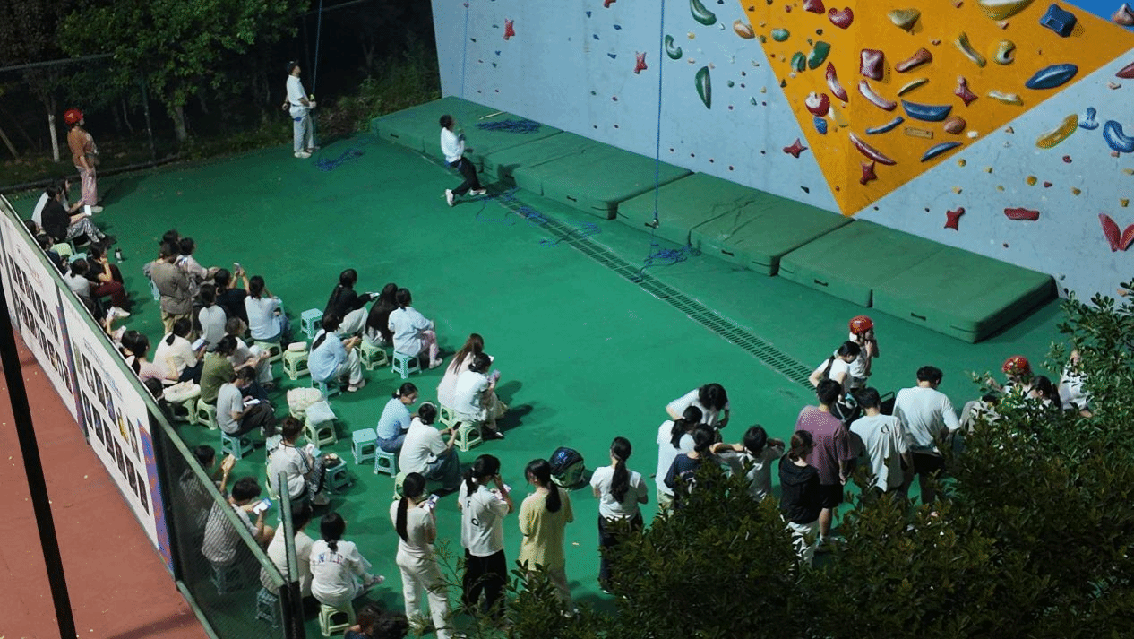 10月16日,重庆移通学院攀岩场热闹非凡,户外运动协会在此成功开展“岩壁试炼,勇者启程”第四期攀岩体验活动,用特色体育活动为学生身体素质提升与校园文化建设注入新活力。活动不仅有闫定才、王越两位老师现场指导,更凭借高人气打破规模限制,众多未成功报名的同学慕名而来,现场氛围热烈。每位体验者在岩壁上的挑战与坚持,都收获了全场掌声。
