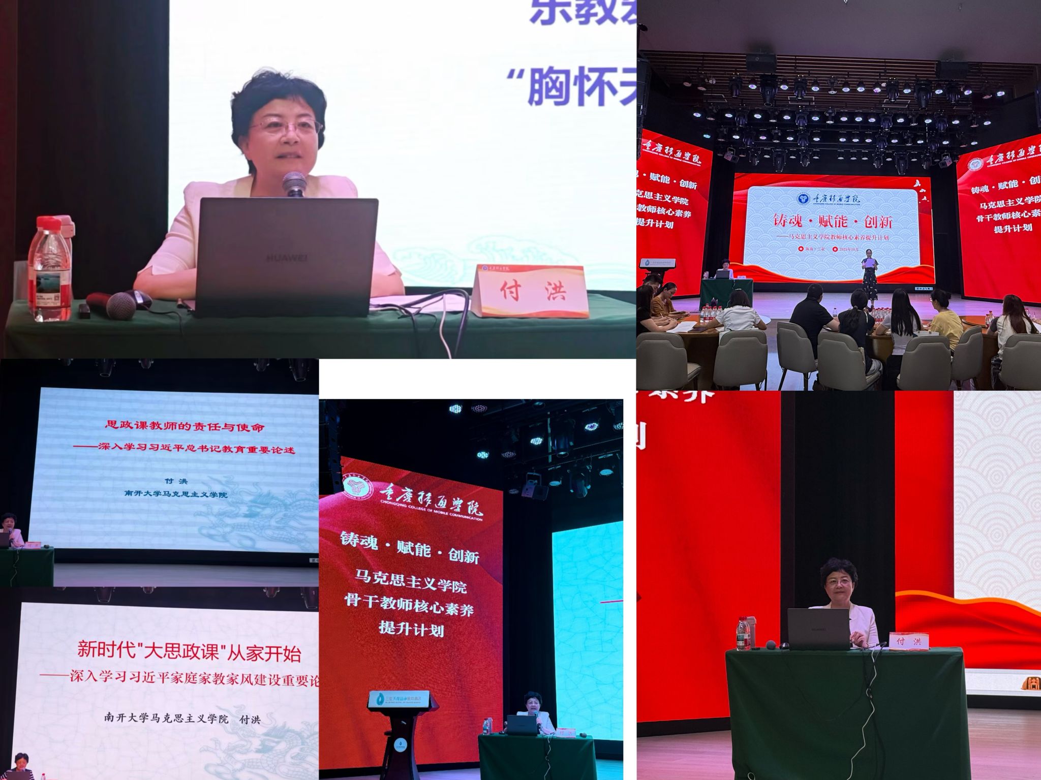 讲“大思政课”融家风明使命,话教学技能解难题传经验。18日上午,南开大学马克思主义学院付洪教授以“思政课教师的责任与使命—深入学习习近平总书记教育重要论述”为题展开讲座,付洪教授结合多年理论研究与教育实践经验,从时代背景、重大意义、科学内涵、实践路径四个维度展开论述。下午,她聚焦“大思政课”与教师使命展开授课,以“新时代‘大思政课’从家开始”为题,深入解读习近平总书记关于家庭家教家风建设的重要论述,提出“将家风教育融入思政课”的教学建议。围炉夜话环节,付教授为老师讲解青年教师在参加教学比赛中的注意事项,老师们围绕如何提升思政课青年教师教学技能等相关问题展开提问,付教授结合实例予以一一回应。