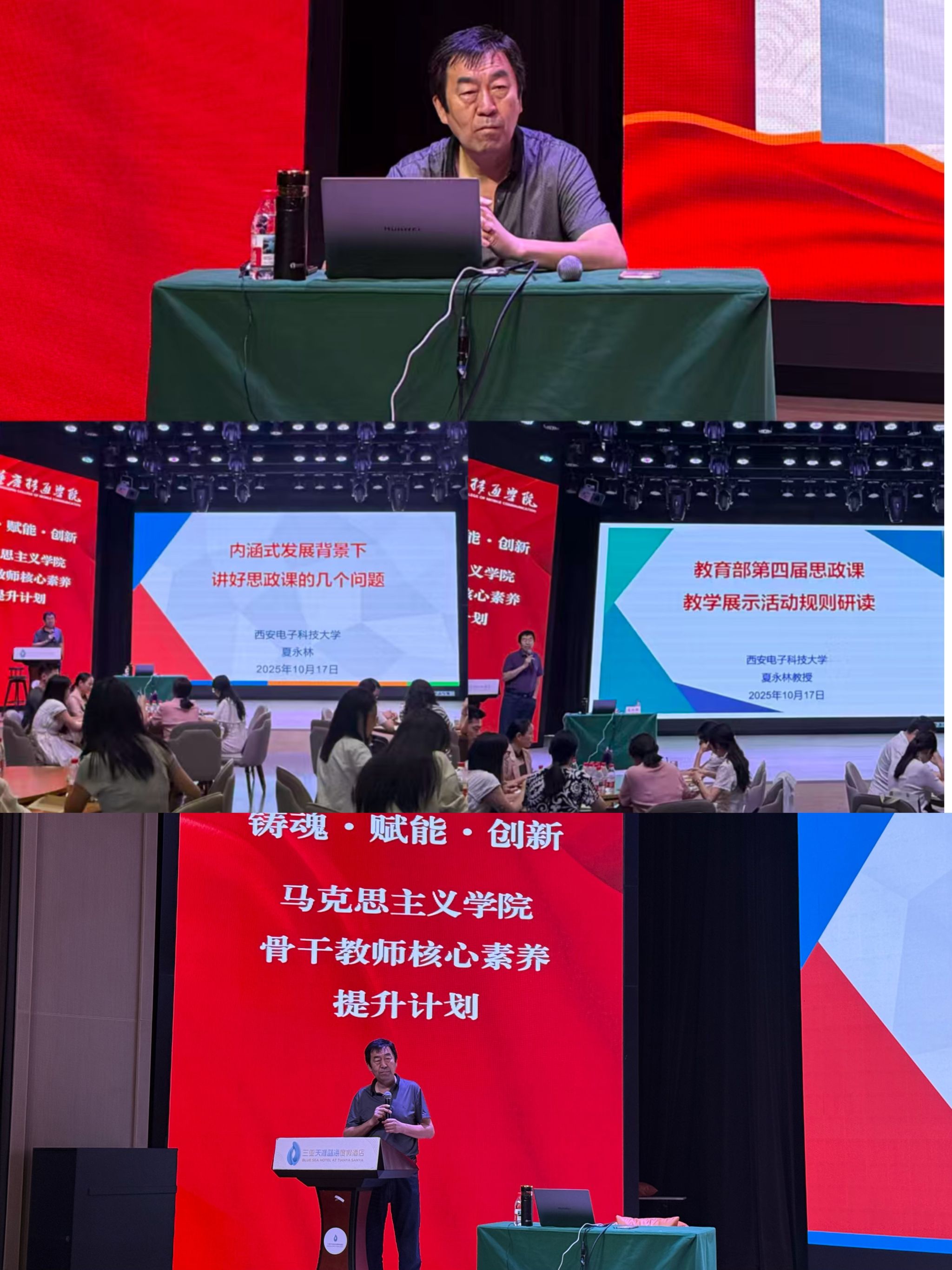 讲思政课关键问题明方向,析竞赛规则导向促提升。17日,西安电子科技大学马克思主义学院夏永林教授首先以“内涵式发展要求下讲好思政课的几个问题”为题,分析当前思政课教学存在的问题,提出“以理论逻辑为基、以学生需求为导向”的教学改进思路;下午,他解读第四届思政课教学展示活动规则变化,强调“赛教相长”对教师核心素养提升的推动作用,建议青年教师通过教学竞赛打磨教学设计、优化教学语言。“围炉夜话”环节,夏永林教授与青年教师面对面交流,针对“如何应对学生跨学科提问”“如何平衡科研与教学”等困惑,鼓励教师们“做有温度的思政课,当有情怀的引路人”。